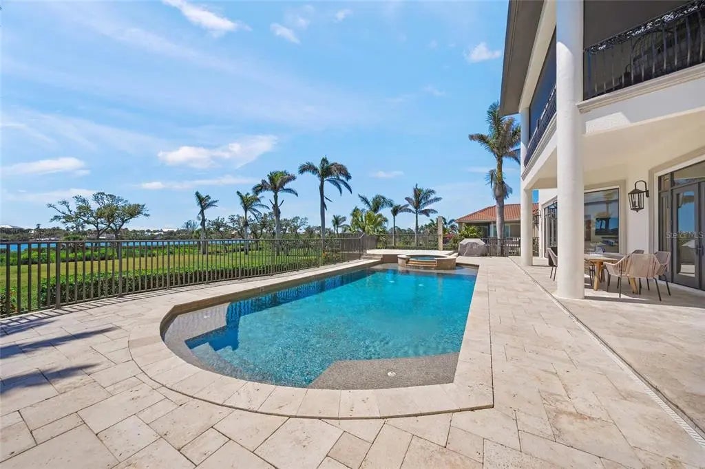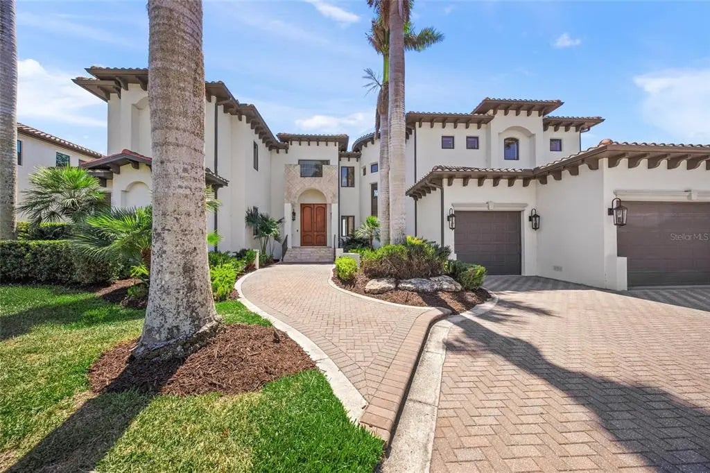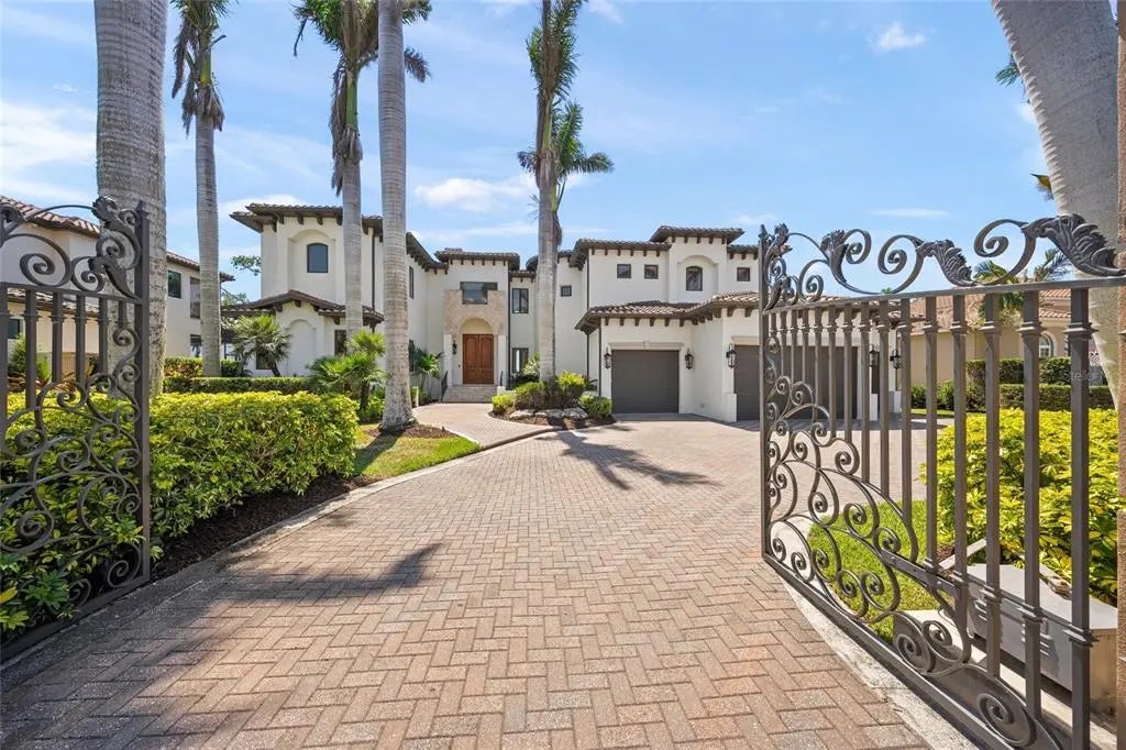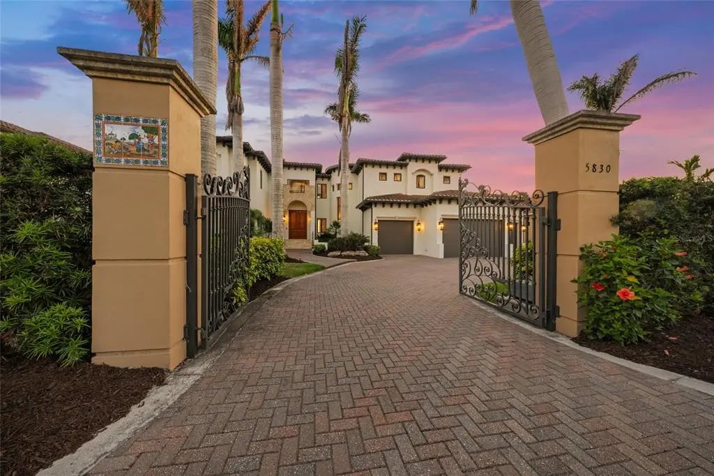 It’s always about the view and this stunning waterfront estate is an exceptional blend of Mediterranean modern luxury, coastal chic design and thoughtful functionality with impact windows and doors throughout. This all-concrete home offers a rare opportunity to enjoy unparalleled Intracoastal Waterway views from nearly every room. Set on a gated full bayfront acre parcel, this exquisite residence combines elegant design with a tranquil, retreat-like ambiance. High-end finishes are present throughout, including travertine flooring, elaborate tray ceilings, all accented by an abundance of natural light pouring in through large windows and French doors. Entering through a grand foyer 10-foot double door entry to living room with floor-to-ceiling windows overlooking the expansive yard to the bay and Manasota Key beyond. Marble wood-burning fireplace sets the focal point. The layout is ideal for everyday living and grand entertaining, with an open flow between the great room and chef-inspired kitchen. The recently remodeled kitchen is a showstopper, featuring sleek quartz countertops, a spacious single-level island with a breakfast bar and top-of-the-line stainless steel appliances, including induction cooktop, a hood, built-in double ovens and a convection microwave, and warming drawer. The extensive remodel totaling $130,000 extends to the family room with built-in seating, shelving and cabinetry topped in quartz extending the entire length of the room, to further elevate this gourmet space. Main level has its laundry room and powder room. All five bedrooms are en suite with walk-in closets. Two on main level and three upper level including the owner's suite. The luxurious baths showcase exotic tile and granite selections. A dedicated elevator offers access to upper-level bedrooms and bonus room. Owner’s suite is exquisite with marble flooring and marble onyx inlay, private screened-in balcony, spacious walk-in closets, laundry room and dual vanity rooms with separate toilets and bidet. The upper-level bonus room offers an added level of versatility, with an adjacent den/office or home gym area. Outside, the outdoor living area is equally impressive, with a heated pool, spa, extensive travertine patio space and covered sitting areas. Ideal for entertaining and enjoying magical sunset views Manasota Key. Oversized four-car garage, with high ceilings. Don't miss the opportunity to make this extraordinary estate your own. Schedule a viewing today and experience this unparalleled waterfront lifestyle. Incredible location in a gated enclave surrounded by 225 acres of preserve, minutes to sandy beaches. Some furnishings are available separately.