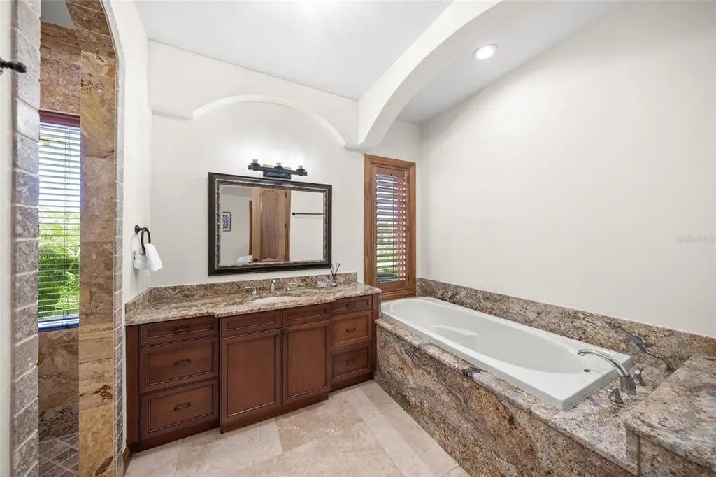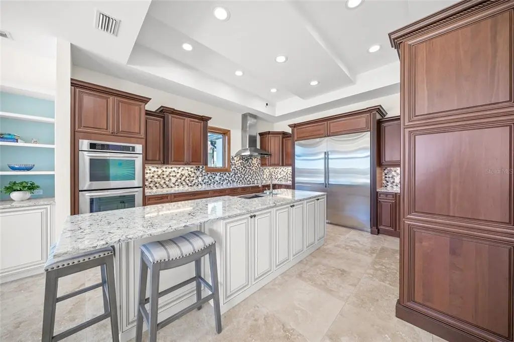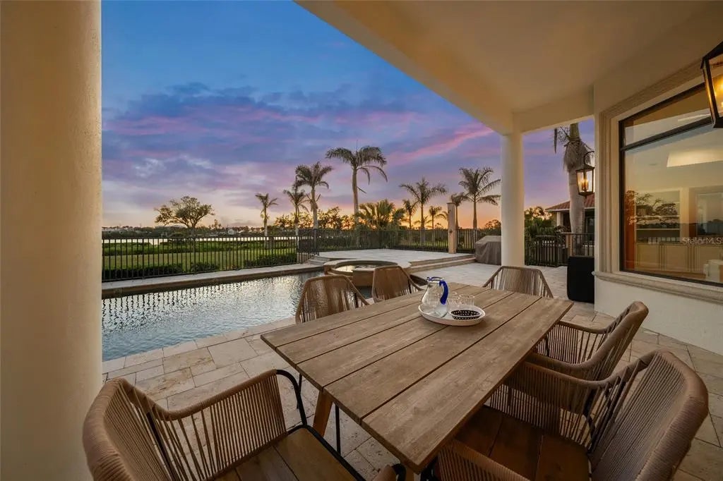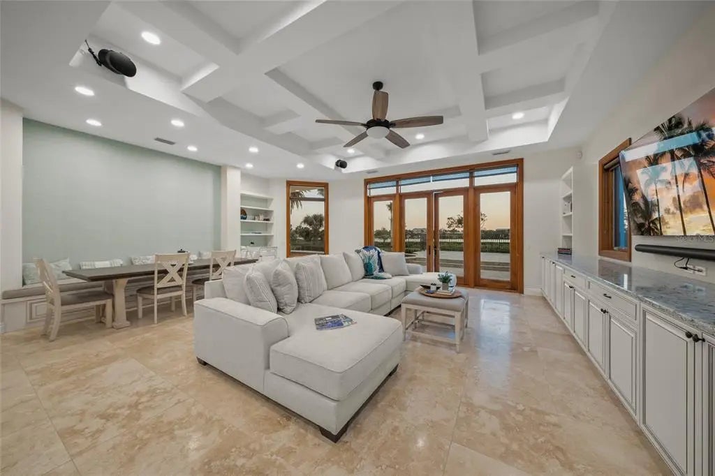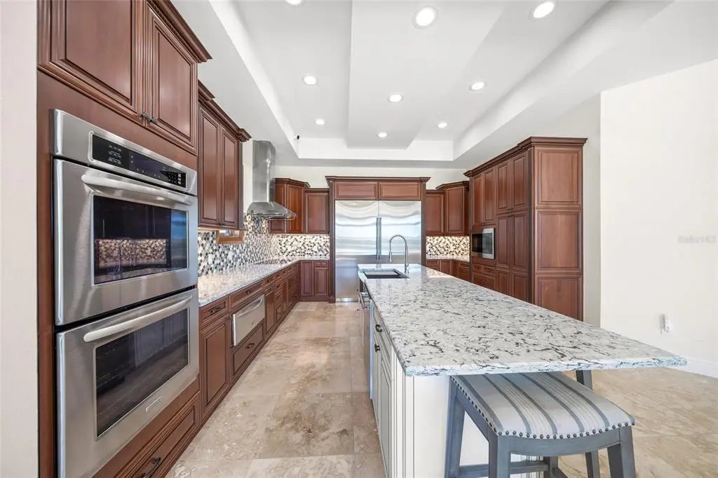 It’s always about the view and this stunning waterfront estate is an exceptional blend of Mediterranean modern luxury, coastal chic design and thoughtful functionality with impact windows and doors throughout. This all-concrete home offers a rare opportunity to enjoy unparalleled Intracoastal Waterway views from nearly every room. Set on a gated full bayfront acre parcel, this exquisite residence combines elegant design with a tranquil, retreat-like ambiance. High-end finishes are present throughout, including travertine flooring, elaborate tray ceilings, all accented by an abundance of natural light pouring in through large windows and French doors. Entering through a grand foyer 10-foot double door entry to living room with floor-to-ceiling windows overlooking the expansive yard to the bay and Manasota Key beyond. Marble wood-burning fireplace sets the focal point. The layout is ideal for everyday living and grand entertaining, with an open flow between the great room and chef-inspired kitchen. The recently remodeled kitchen is a showstopper, featuring sleek quartz countertops, a spacious single-level island with a breakfast bar and top-of-the-line stainless steel appliances, including induction cooktop, a hood, built-in double ovens and a convection microwave, and warming drawer. The extensive remodel totaling $130,000 extends to the family room with built-in seating, shelving and cabinetry topped in quartz extending the entire length of the room, to further elevate this gourmet space. Main level has its laundry room and powder room. All five bedrooms are en suite with walk-in closets. Two on main level and three upper level including the owner's suite. The luxurious baths showcase exotic tile and granite selections. A dedicated elevator offers access to upper-level bedrooms and bonus room. Owner’s suite is exquisite with marble flooring and marble onyx inlay, private screened-in balcony, spacious walk-in closets, laundry room and dual vanity rooms with separate toilets and bidet. The upper-level bonus room offers an added level of versatility, with an adjacent den/office or home gym area. Outside, the outdoor living area is equally impressive, with a heated pool, spa, extensive travertine patio space and covered sitting areas. Ideal for entertaining and enjoying magical sunset views Manasota Key. Oversized four-car garage, with high ceilings. Don't miss the opportunity to make this extraordinary estate your own. Schedule a viewing today and experience this unparalleled waterfront lifestyle. Incredible location in a gated enclave surrounded by 225 acres of preserve, minutes to sandy beaches. Some furnishings are available separately.