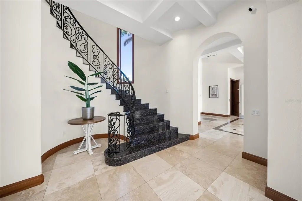 - Interior FeaturesBuilt-in Features, Cathedral Ceiling(s), Ceiling Fan(s), Central Vacuum, Coffered Ceiling(s), Eating Space In Kitchen, Elevator, High Ceilings, Kitchen/Family Room Combo, PrimaryBedroom Upstairs, Solid Surface Counters, Solid Wood Cabinets, Split Bedroom, Stone Counters, Tray Ceiling(s), Walk-In Closet(s), Window Treatments