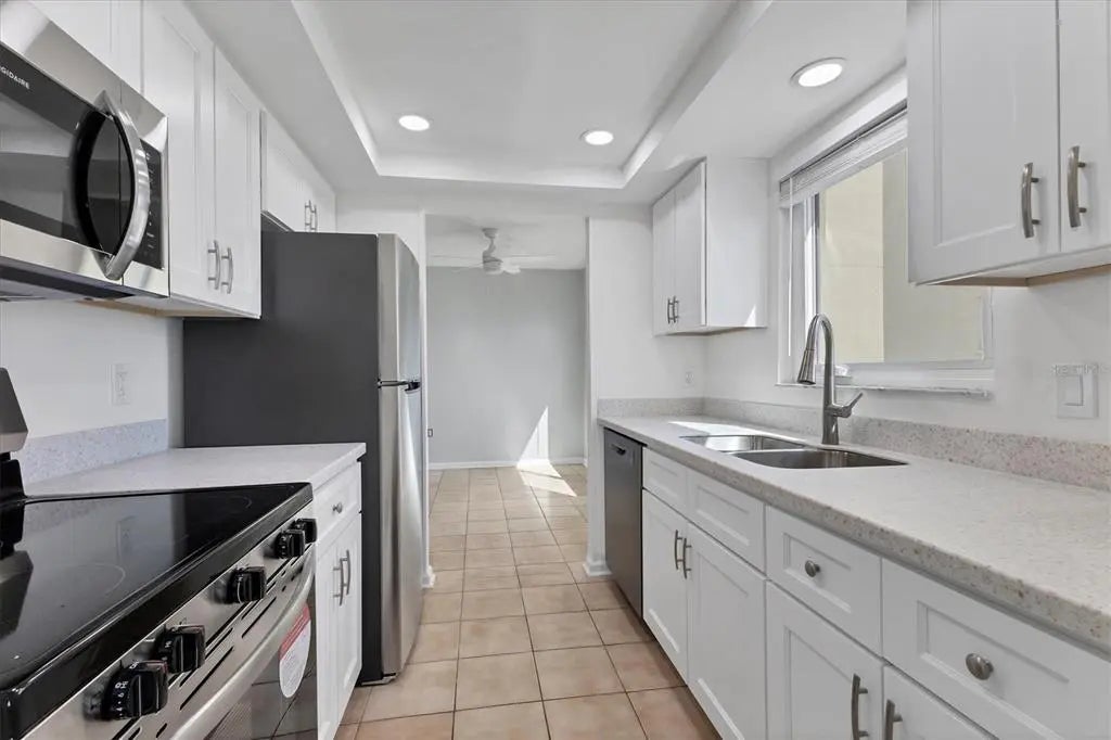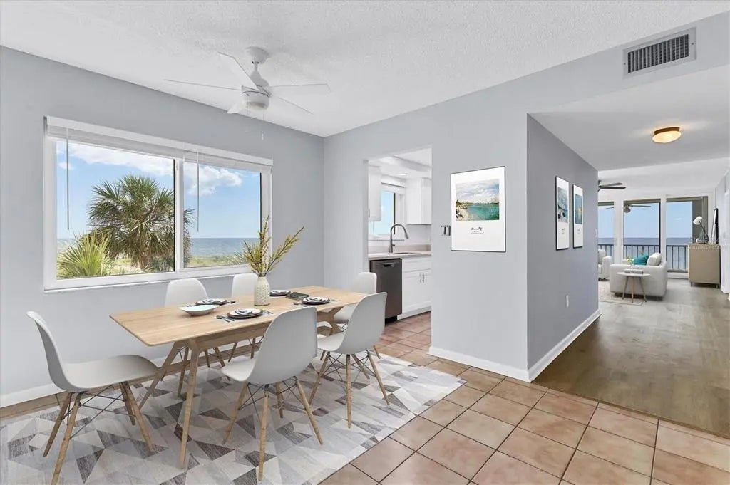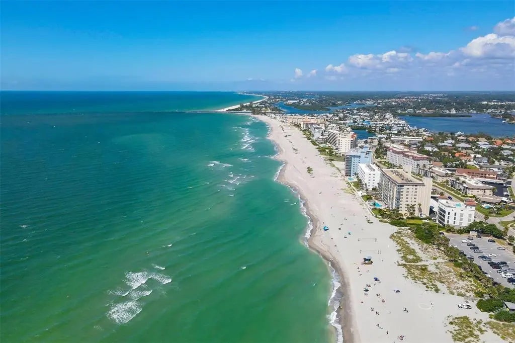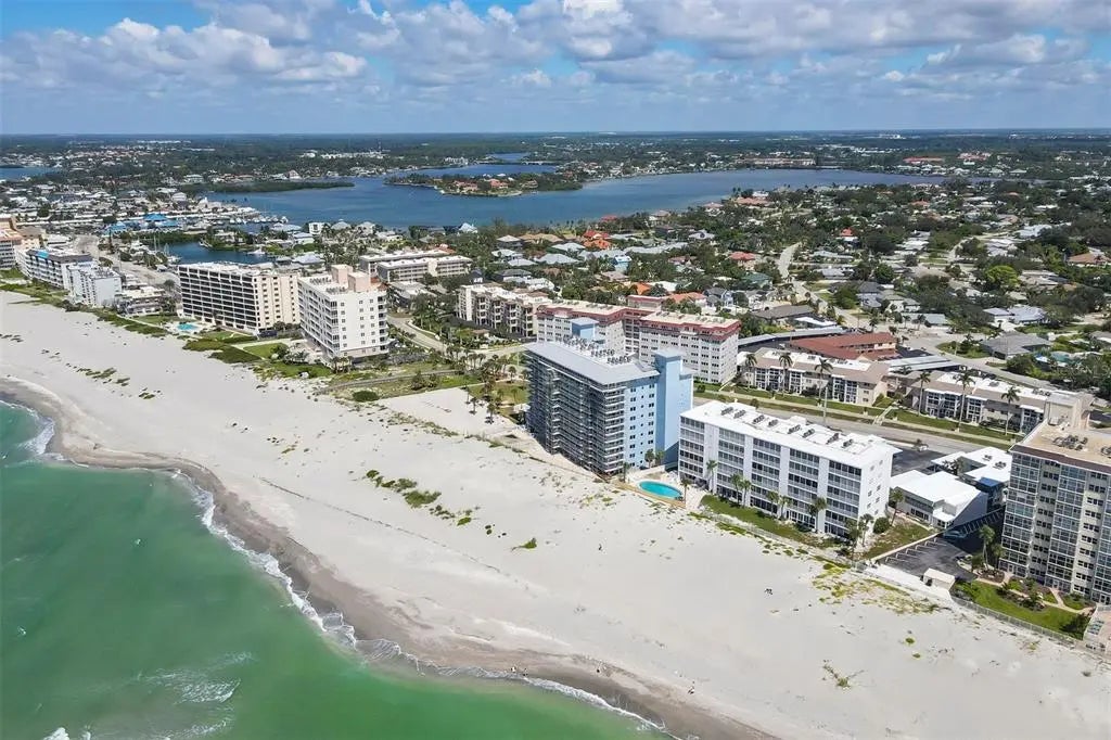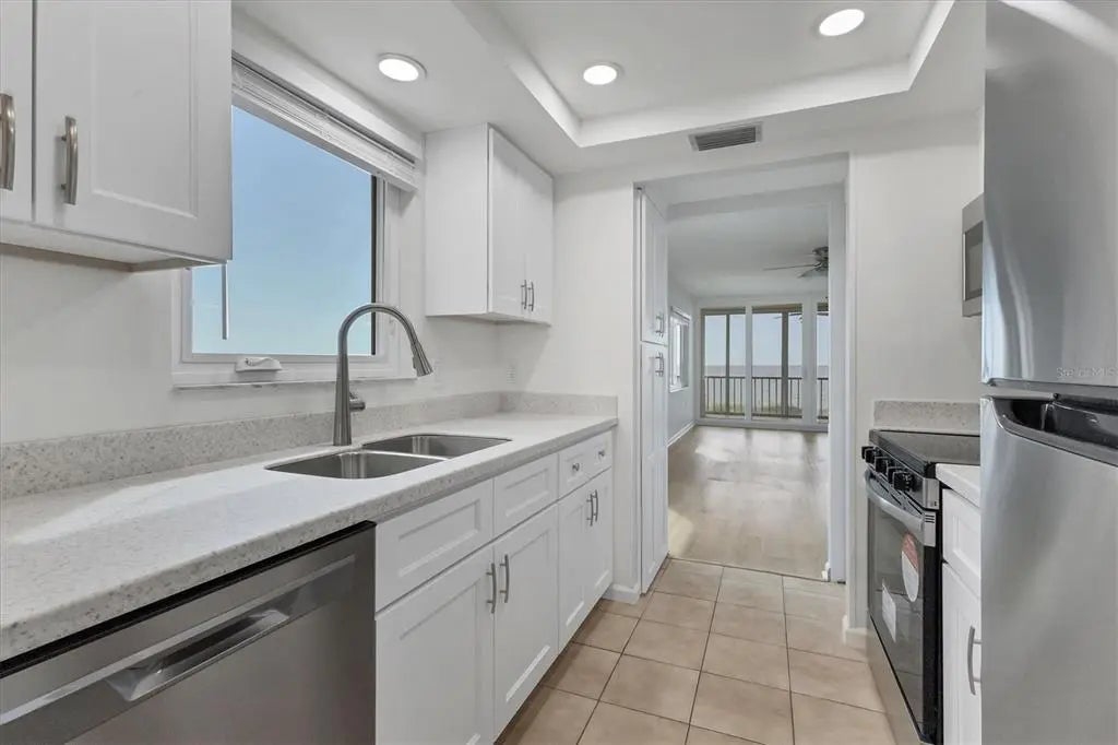 One or more photo(s) has been virtually staged. Live the coastal lifestyle reimagined at Gulf Horizons, a beautifully restored beachfront community on historic Venice Island! This third-floor corner residence at 555 The Esplanade North captures panoramic Gulf of Mexico views and effortless elegance in every detail. Spanning 1,195 square feet, the two-bedroom, two-bath home is infused with light and designed for comfort. Recent interior enhancements include a full suite of Frigidaire kitchen appliances, custom cabinetry, updated countertops and new faucets in both the kitchen and baths. Luxury vinyl plank flooring, new ceiling fans and a York five-ton air-conditioning unit elevate everyday living, while hurricane-impact windows and sliding glass doors provide peace of mind. The building itself has recently completed a full-scale renovation following Hurricane Milton, with modernized systems and refreshed common areas designed to enhance both resilience and visual appeal. Step onto the private balcony and take in uninterrupted sunset vistas or enjoy the direct access to the sandy Gulf shoreline just steps away. Beyond your front door, the boutiques, cafes, restaurants and cultural charm of downtown Venice are just moments away. This is more than a residence. It is a refined retreat where modern luxury meets timeless coastal beauty!