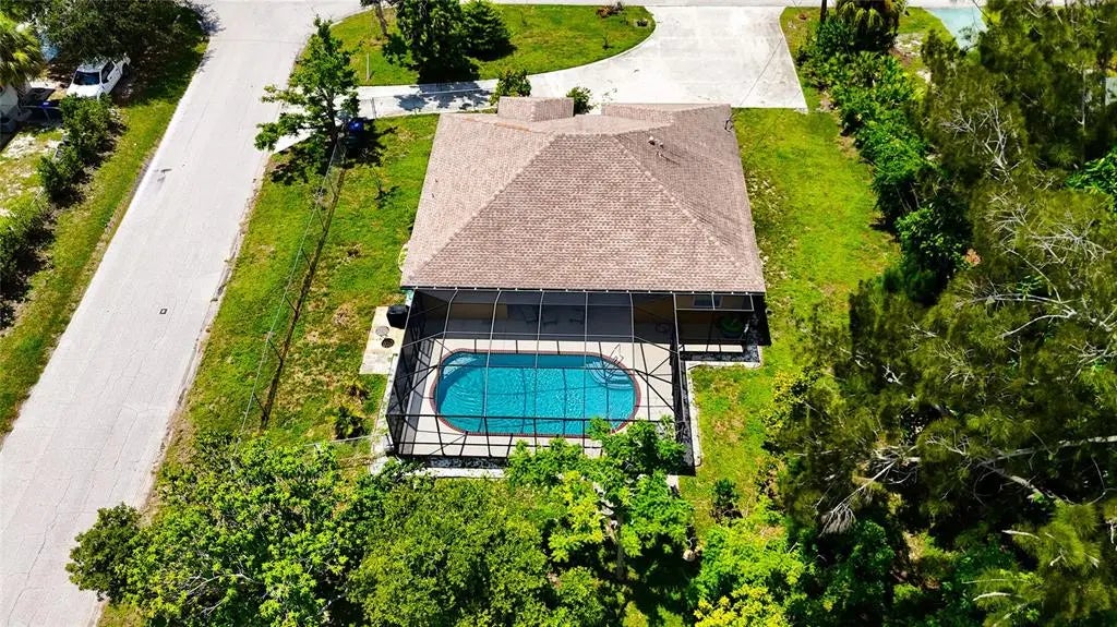 Price Improvement- Welcome to your Florida dream home! Built in 2017 and impeccably maintained, block, Furnished!!! this 3-bedroom + den, 2-bath pool home offers the perfect blend of style, space, and serenity. Located in the desirable Venice Gardens, this home sits on an expansive 0.39-acre lot filled with mature, fruit-bearing trees and is just minutes from the beach! Public water, and Public sewer, NO CDD, and NO HOA. Step inside to over 1,600 sq. ft. of light-filled living space, where you're greeted by soaring 9'4" ceilings throughout, and a cathedral ceiling in the family room peaking at over 14 feet—creating an airy, open feel. The front den makes a perfect home office, homeschool room, or a cozy sitting area, while the formal dining room across the way is ideal for entertaining. The heart of the home is the open-concept kitchen, which overlooks the spacious family room and offers a beautiful view of the screen-enclosed pool and lanai—your private backyard oasis. Enjoy a dip in the sparkling pool, then relax in the shaded lanai area surrounded by lush landscaping. Retreat to the luxurious owner’s suite, complete with French door access to the pool area, a spa-inspired in suite bath featuring a garden tub, full walk-in shower, and dual vanities. Plenty room for RV, Boat, and several cars in the Driveway. Love fresh fruit? You’re in luck ! this oversized lot is a tropical paradise, with mature producing mango, jackfruit, lychee, sapodilla, gumbo-limbo, and sugar apple trees your own backyard farmer’s market! In a Prime Location Only 4 miles to Caspersen Beach, 10 minutes to downtown Venice, and less than 20 miles to world-famous Siesta Key Beach and Sarasota Downtown. Whether it’s boating, fishing, dining, shopping, or simply soaking up the sun, everything you love about Florida living is right at your fingertips. Don’t miss your chance to own this slice of paradise—schedule your private showing today!