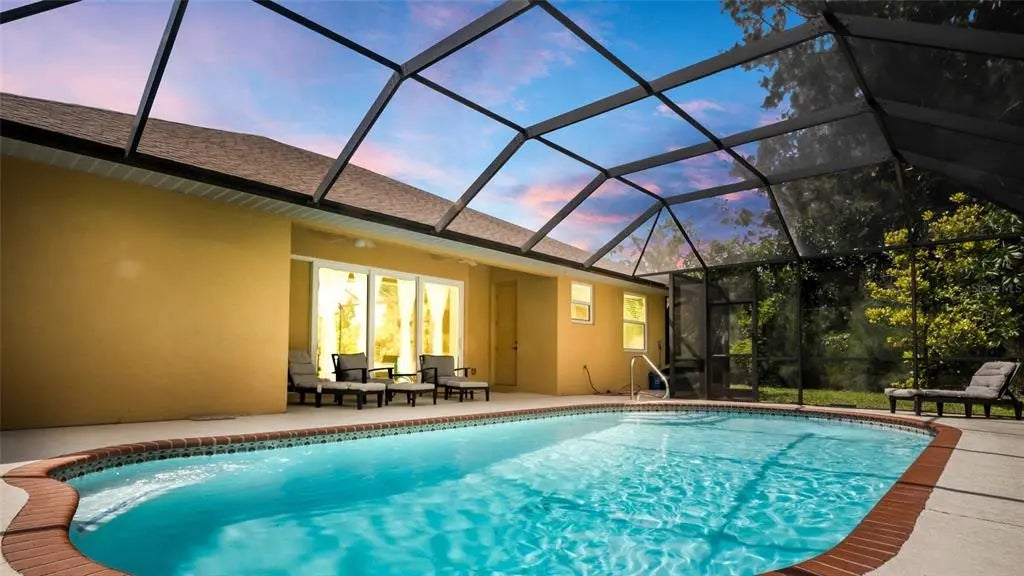 Price Improvement! Great Opportunity, Welcome to your Florida dream home! Built in 2017 and impeccably maintained, block, Furnished!!! this 3-bedroom + den, 2-bath pool home offers the perfect blend of style, space, and serenity. Located in the desirable Venice Gardens, this home sits on an expansive 0.39-acre lot filled with mature, fruit-bearing trees and is just minutes from the beach! Public water, and Public sewer, NO CDD, and NO HOA. Step inside to over 1,600 sq. ft. of light-filled living space, where you're greeted by soaring 9'4" ceilings throughout, and a cathedral ceiling in the family room peaking at over 14 feet—creating an airy, open feel. The front den makes a perfect home office, homeschool room, or a cozy sitting area, while the formal dining room across the way is ideal for entertaining. The heart of the home is the open-concept kitchen, which overlooks the spacious family room and offers a beautiful view of the screen-enclosed pool and lanai—your private backyard oasis. Enjoy a dip in the sparkling pool, then relax in the shaded lanai area surrounded by lush landscaping. Retreat to the luxurious owner’s suite, complete with French door access to the pool area, a spa-inspired in suite bath featuring a garden tub, full walk-in shower, and dual vanities. Plenty room for RV, Boat, and several cars in the Driveway. Love fresh fruit? You’re in luck ! this oversized lot is a tropical paradise, with mature producing mango, jackfruit, lychee, sapodilla, gumbo-limbo, and sugar apple trees your own backyard farmer’s market! In a Prime Location Only 4 miles to Caspersen Beach, 10 minutes to downtown Venice, and less than 20 miles to world-famous Siesta Key Beach and Sarasota Downtown. Whether it’s boating, fishing, dining, shopping, or simply soaking up the sun, everything you love about Florida living is right at your fingertips. Don’t miss your chance to own this slice of paradise—schedule your private showing today!