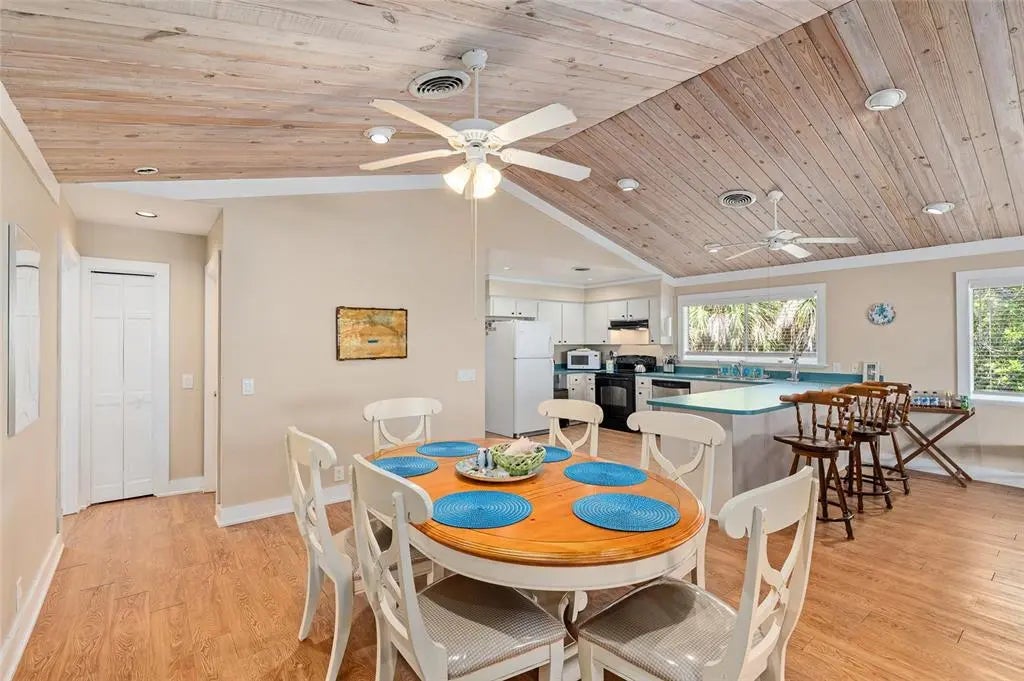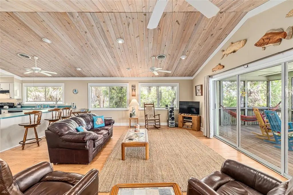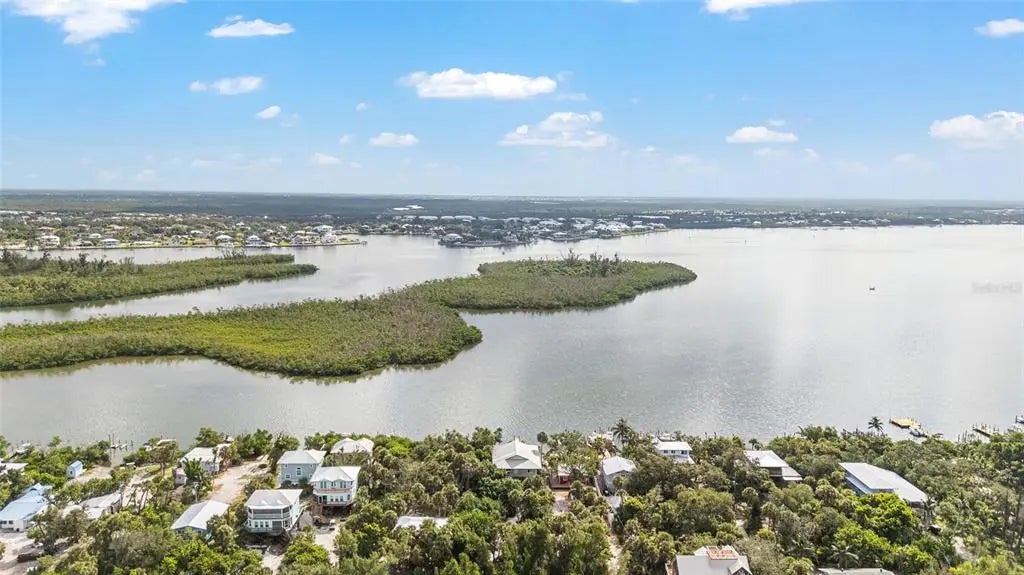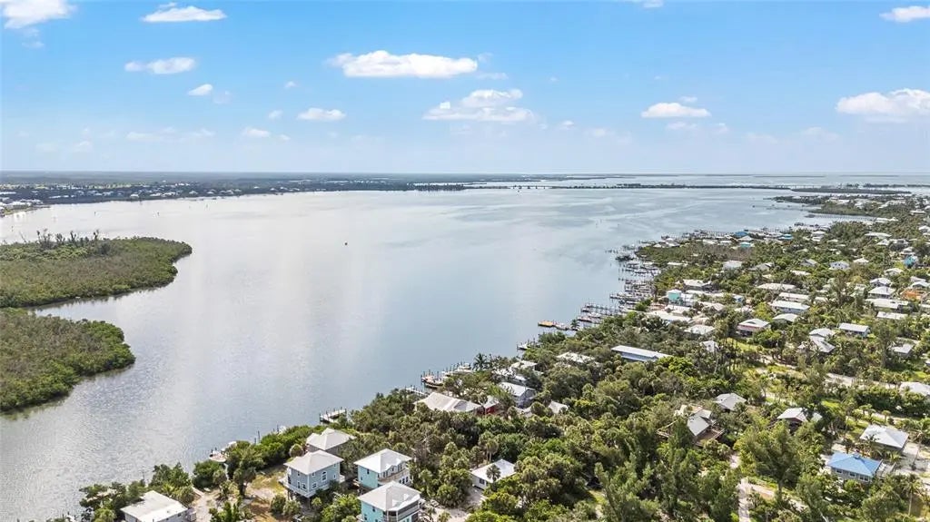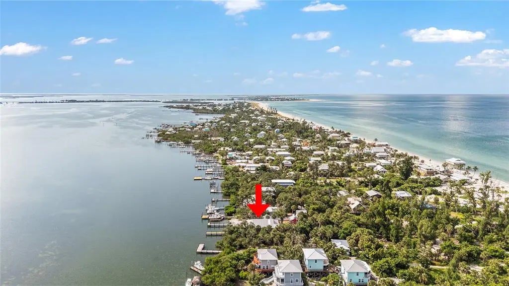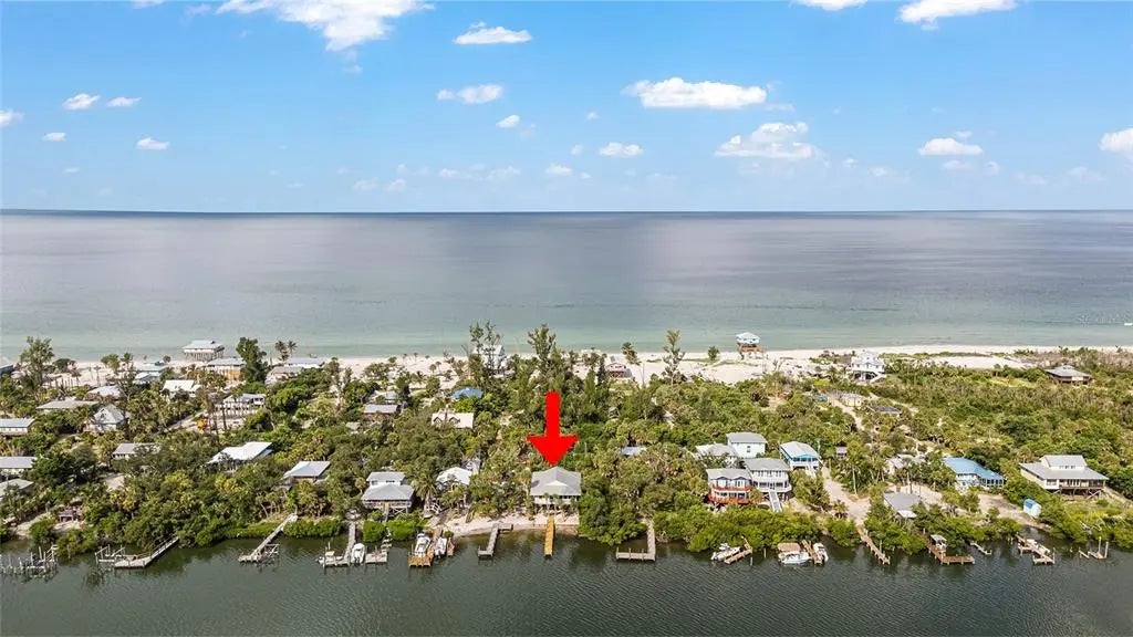 BAYFRONT HOME WITH A PRIVATE DOCK! Escape to your private paradise on Little Gasparilla Island, a bridgeless barrier island just off the Cape Haze Peninsula, accessible only by private boat or water taxi. Free from cars, shops, and crowds, this rare island retreat offers pure tranquility with over 3 miles of pristine, uncrowded beaches for swimming, shelling, shark tooth hunting, fishing, or simply relaxing with a book in the warm gulf breeze. Set on a .37-acre lot stretching 350 feet deep with 50 feet of bayfront (THREE SEPARATE PARCELS INCLUDED IN SALE), this stunning home features a private dock and panoramic views that capture sunrises over the bay and sunsets over the Gulf. Inside, expansive windows flood the open floor plan with natural light, while the chef’s kitchen boasts , an extra-long island, and ample storage. Tongue-and-groove wood ceilings in the main living areaadd warmth and character, while the home’s turnkey furnished status makes moving in effortless. With 3 spacious bedrooms, 2 bathrooms, and multiple outdoor living spaces—screened, covered, and open-air—you’ll find endless places to entertain, unwind, and soak in the beauty of dolphins, manatees, and boating activity on the bay. Practical features make island living easy, including a new metal roof, A/C (2021), outdoor shower, kayak/SUP storage, and an outdoor elevator to carry up groceries and luggage. Storage is abundant for all your beach and boating gear, and sandy golf cart trails let you explore the island and meet welcoming neighbors. Just steps from your door, enjoy beach access to the Gulf’s turquoise waters. Whether you’re searching for a serene family getaway, a vacation rental investment, or your forever island home, this property seamlessly blends comfort, convenience, and the natural beauty of island life.