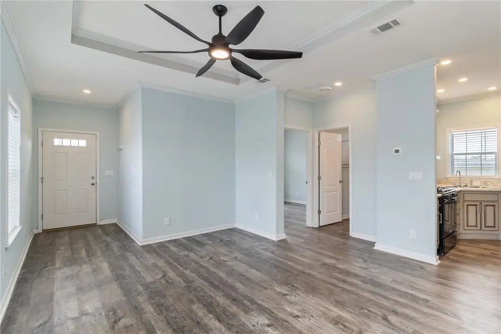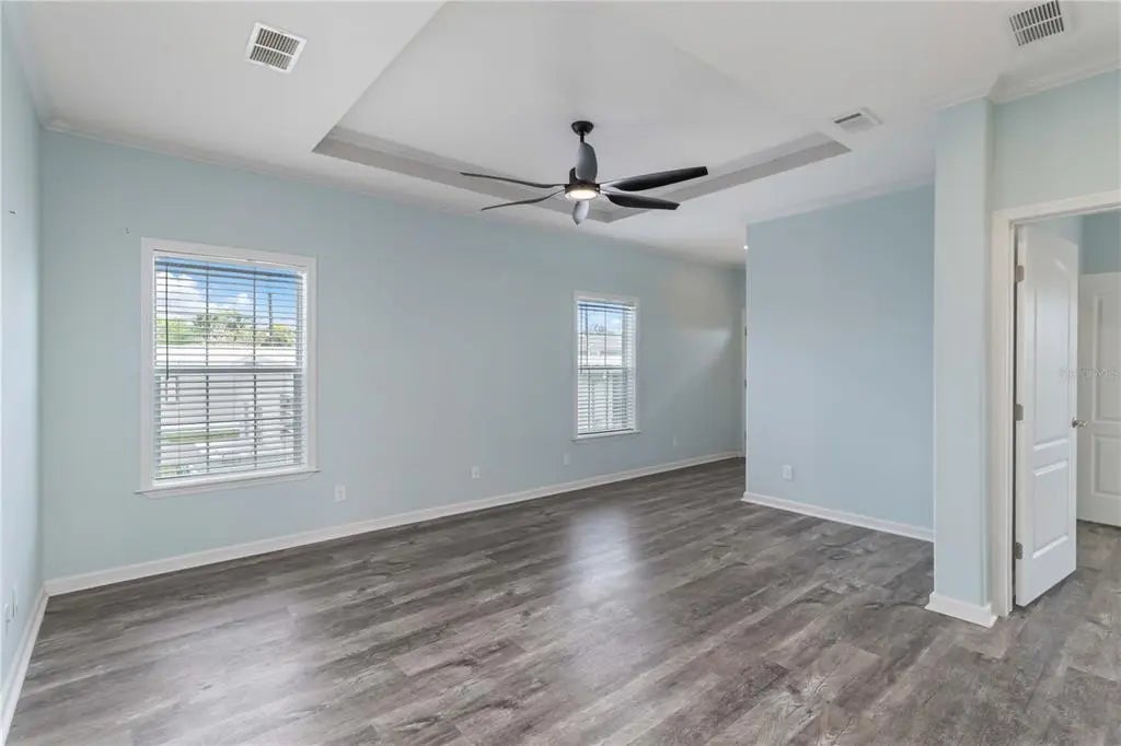 - Interior FeaturesCeiling Fan(s), Eating Space In Kitchen, Open Floorplan, Solid Surface Counters, Thermostat, Window Treatments