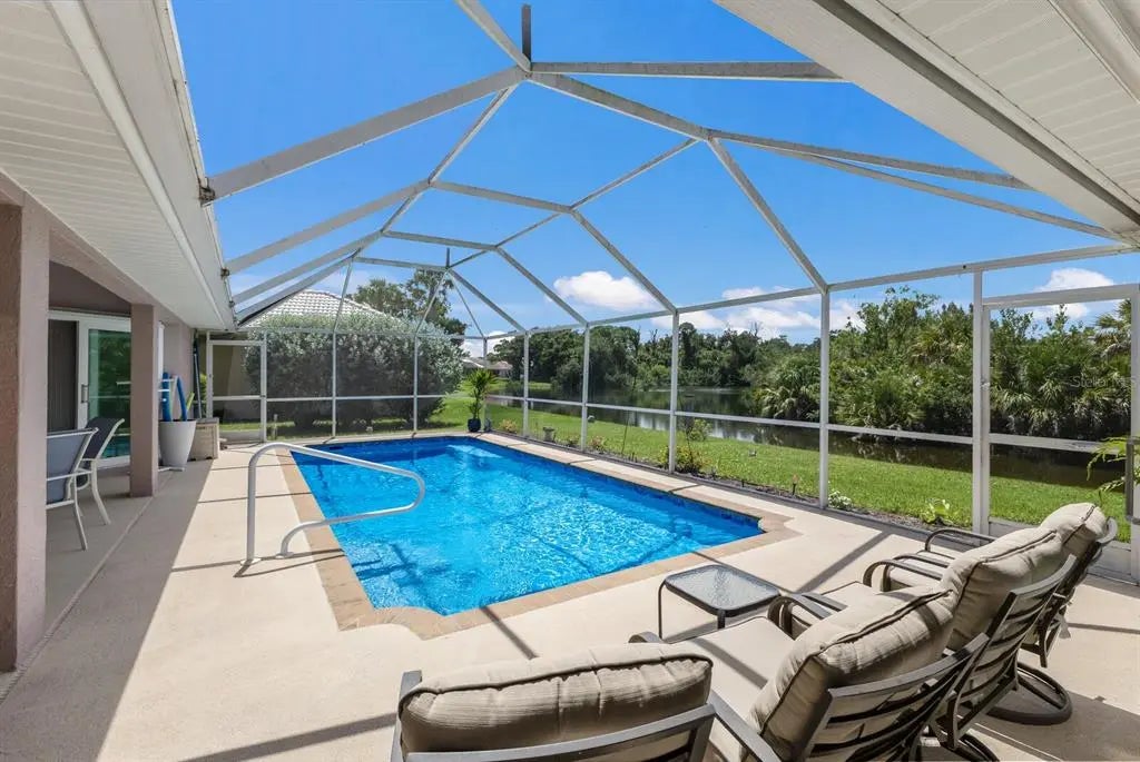 Discover why The Lakes of Jacaranda is one of Venice’s most desirable communities—and why this home is your perfect chance to be part of it. a spacious pool home with serene water views and the upgrades you’ve been waiting for. Wake up to serene lake views and spend your afternoons poolside in the privacy of your own tropical retreat. The screened lanai is a true source of bliss , offering a sparkling resurfaced pool with updated systems, plenty of space for lounging or entertaining, and a backdrop of tranquil water and lush landscaping. From sunrise coffee to evening gatherings, this outdoor oasis is where you’ll want to be. Step inside and the sense of openness continues. Walls of sliders flood the living spaces with natural light, seamlessly connecting indoors to out. The formal living and dining rooms impress with soaring 12-foot ceilings and crown molding, while the oversized family room with tray ceiling is perfect for casual nights in or hosting a crowd. The updated kitchen is both stylish and functional, featuring granite countertops, stainless steel appliances, a walk-in pantry, and a sunny eat-in nook overlooking the pool. The primary suite is a peaceful escape, complete with tray ceilings, dual closets, and a spa-inspired bath with soaking tub, walk-in shower, and dual vanities. Two additional bedrooms, each large enough for a king bed, provide comfort and flexibility for family and guests. Thoughtful updates throughout the home provide peace of mind, including a new roof, hurricane-rated sliders, storm shutters, resurfaced pool, new electrical panel, and fresh paint inside and out. Beyond your door, The Lakes of Jacaranda offers a community pool, clubhouse, tennis and pickleball courts, scenic walking and biking trails, and plenty of planned activities to enjoy with neighbors. All this just minutes from Gulf beaches, charming Venice Island, shopping, dining, golf, medical facilities, and even spring training baseball. This is more than a home- it’s your entry into one of Venice’s most beloved communities. Rarely do opportunities like this come available.