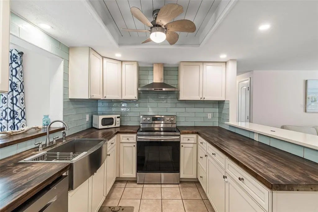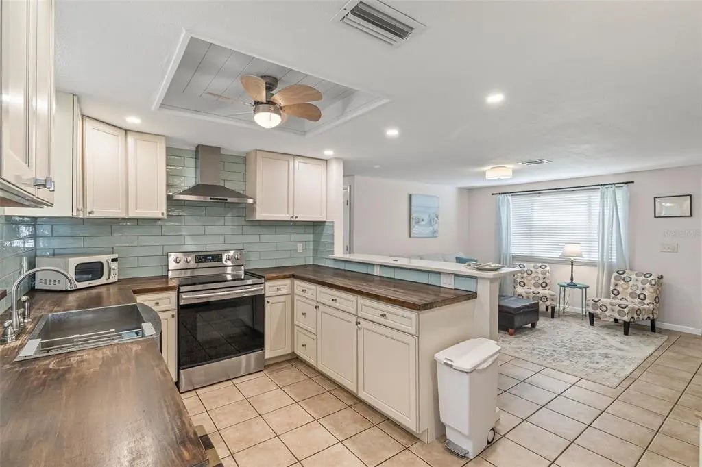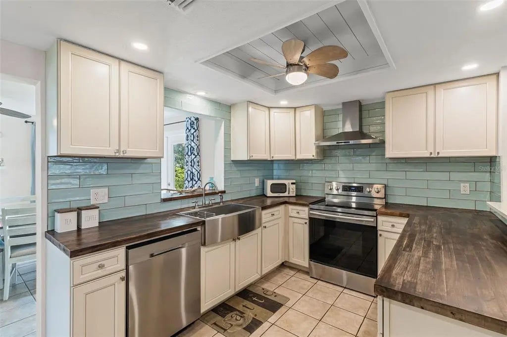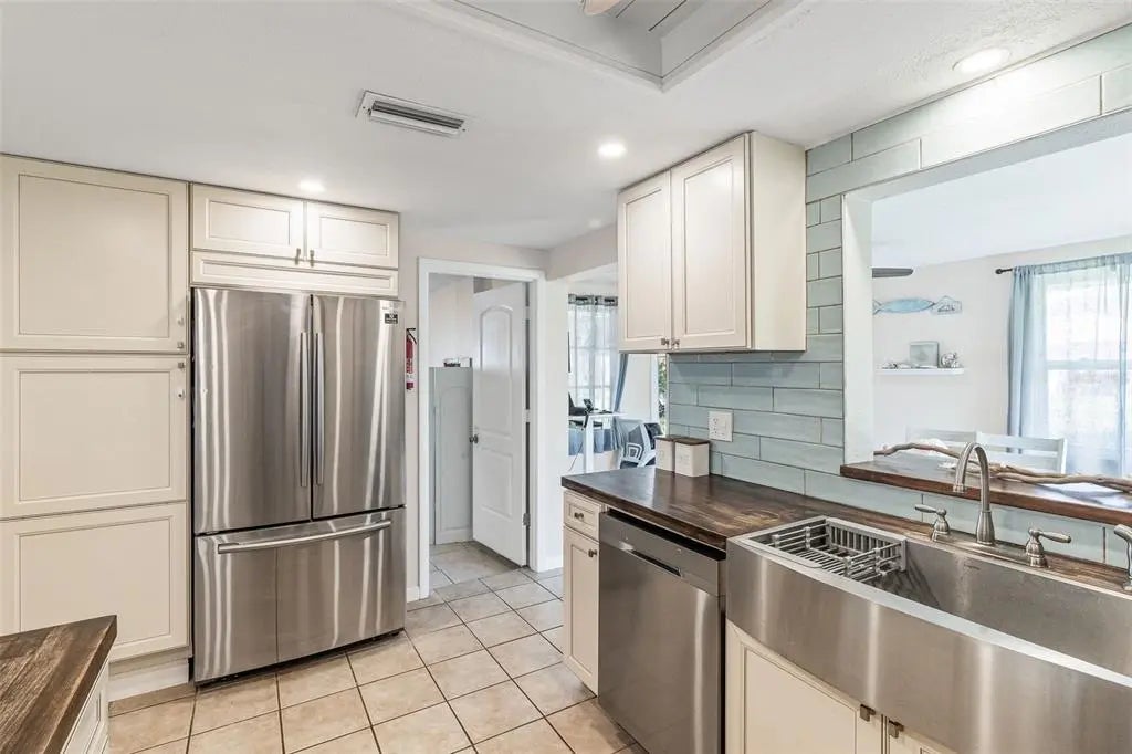 Located just 2.7 miles from the powder white, sandy shores of Manasota Key Beach, this beautifully updated Venice home captures the essence of relaxed coastal living. Nestled on a quiet, non-deed restricted street, the property is within easy reach of all that Venice has to offer—shopping, dining, historic downtown, and more. Step inside and you’ll find a light, airy interior with a modern design feel. Tasteful finishes and fixtures create a stylish yet comfortable atmosphere throughout. Easy-to-maintain tile flooring runs seamlessly across the main living spaces, while the recently updated gourmet kitchen features newer stainless steel appliances, a striking celadon subway tile backsplash, handsome butcher block counters, and an oversized stainless farmhouse sink. The open-concept layout flows into an enclosed Florida room—currently enjoyed as a bright dining area—that’s perfect for entertaining family and friends. Practical updates include a water softener and conditioning system, a 2-year-old roof and water heater, new AC in 2023, newer carpets, a new dryer, and a new weathered-look garage door. This home is move-in ready and sure to be a buyer's beloved retreat in the heart of south Venice. Whether you’re searching for an investment property with rental potential, a seasonal snowbird retreat, or a full-time residence, this versatile home offers the ideal blend of style, comfort, and location.