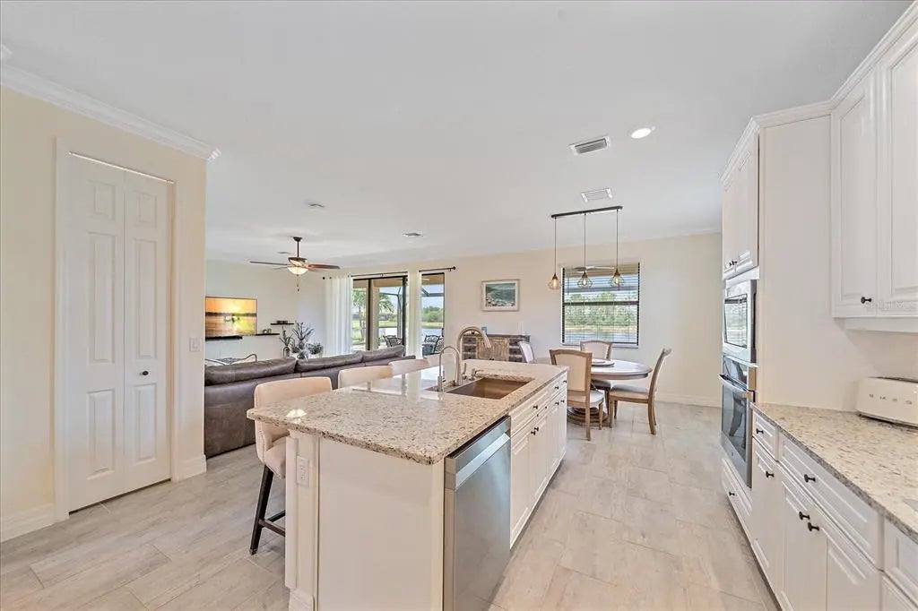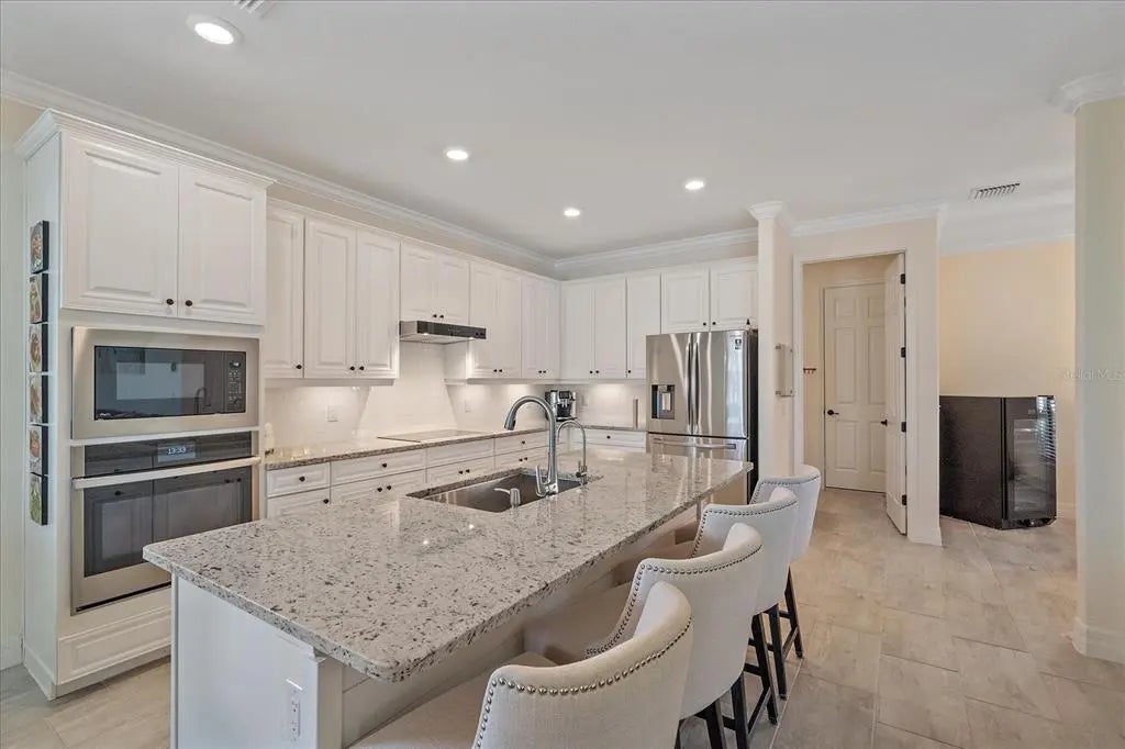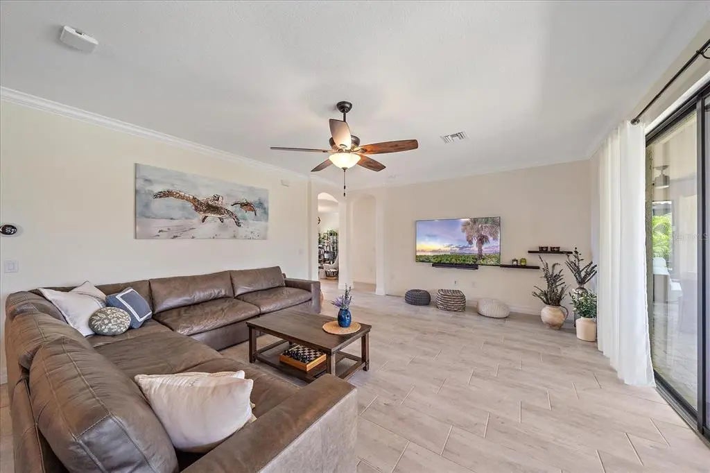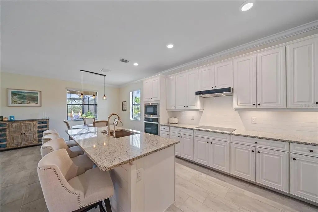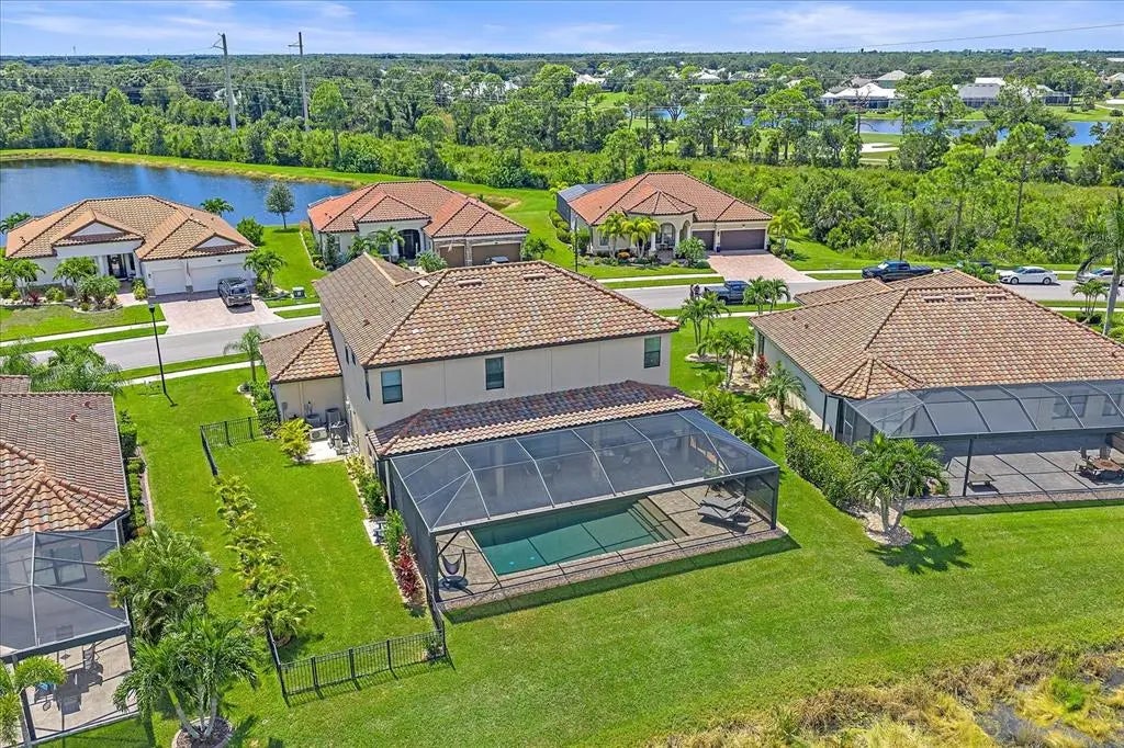 Impressive 6-bedroom, 3-bath, 3-car garage home located in the highly desirable, gated community of Gran Paradiso at Wellen Park. This beautifully upgraded residence offers 3,563 sq. ft. of living space with a thoughtful floor plan perfect for entertaining, working from home, or accommodating multi-generational living. The property features a brand-new heated saltwater pool with full enclosure and expanded patio (2023), creating a private outdoor oasis with serene lake views. Step inside to find 9 ½ ft. ceilings, an open foyer, and a bright, open-concept layout that enhances the sense of space and natural light. The interior is finished with ceramic tile and luxury vinyl flooring, while the garage showcases durable epoxy flooring. The garage is climate controlled with a mini split. The upgraded kitchen is a chef’s delight with stainless-steel appliances, abundant cabinetry, and a large island for gathering. Offered fully furnished (optional), this home provides a true turnkey opportunity for immediate enjoyment. Gran Paradiso delivers resort-style living with an impressive amenity package including a grand clubhouse, state-of-the-art fitness center, tennis and pickleball courts, resort-style pool, spa, and miles of walking and biking trails. HOA fees include lawn care, high-speed internet, and cable, allowing for a low-maintenance lifestyle. Conveniently located just minutes to Wellen Park, historic downtown Venice, championship golf, shopping, dining, and the pristine Gulf beaches. This is a rare opportunity to own a move-in ready, beautifully appointed home with modern upgrades and a brand-new pool retreat in one of Venice’s most desirable communities. Schedule your private showing today and experience all that Gran Paradiso has to offer.
