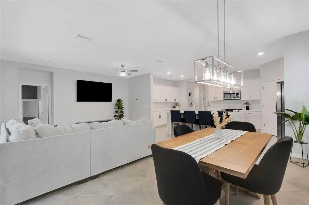 - Interior FeaturesCeiling Fan(s), Eating Space In Kitchen, High Ceilings, In Wall Pest System, Kitchen/Family Room Combo, Living Room/Dining Room Combo, Open Floorplan, Primary Bedroom Main Floor, Split Bedroom, Stone Counters, Thermostat, Walk-In Closet(s), Window Treatments