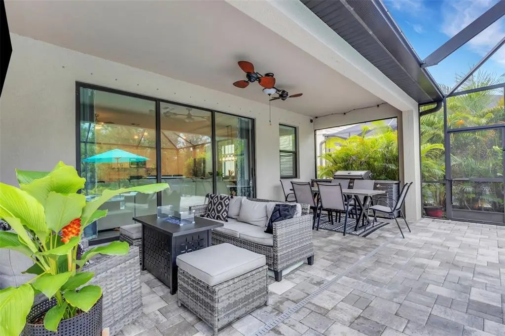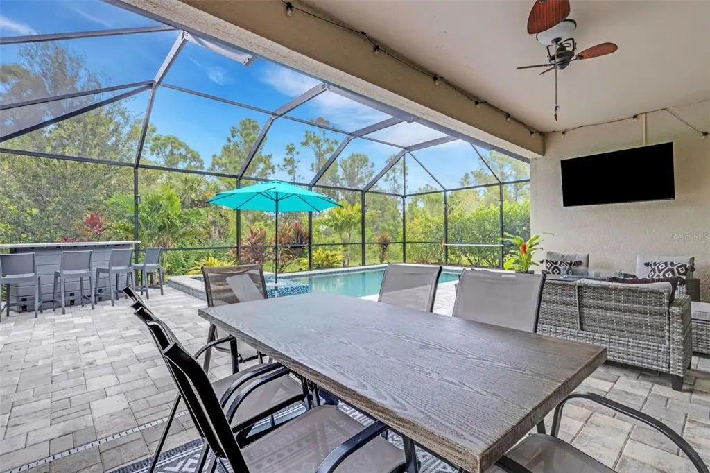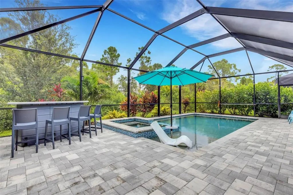 Under contract-accepting backup offers. Motivated Seller! Bring offers. Exquisite model like home located in a X FLOOD ZONE, no flood insurance required, and maintenance-free with LOW HOA COSTS! Designer Finishes & Private Resort-Style Pool and Spa with Preserve Views in Wellen Park! Welcome to this beautifully designed 3-bedroom, 3-bathroom home with a versatile den/flex room, located in one of Wellen Park’s most sought-after, golf cart, family-friendly communities. The extended paver driveway allows for plenty of parking. Step into the grand foyer with custom wall detailing, soaring 9.5’ ceilings throughout, and an abundance of natural light that sets the tone for sophistication. The CHEFS GOURMET KITCHEN features white shaker cabinetry with top moulding and designed with convenient pullout drawers for pots and pans and trash bin. CUSTOM CALACATTA QUARTZ WATERFALL COUNTERTOPS AND BACKSPLASH, an abundance of cabinets and counters for the entertainers dream, EXTENDED CENTER ISLAND, stainless steel appliances, and a spacious WALK-IN pantry—perfect for culinary enthusiasts. The open layout seamlessly flows into the dining and living areas, opening through 8’ TRIPLE SLIDERS to the expansive lanai with serene preserve views, creating the perfect backdrop for breathtaking sunset evenings over the preserve and birdlife. The luxurious primary suite offers a serene retreat with TWO walk-in closets, a spa-inspired bath with soaking tub, dual sinks with granite countertops, and a tremendous large glass-enclosed shower. The junior en suite is ideal for guests or in-laws, featuring its own private bathroom with a walk-in shower. A third bedroom with a nearby full bath provides comfort and convenience for family or visitors. Enjoy the spacious den/flex room with French doors, a well-appointed laundry room with utility sink and cabinetry, this home offers peace of mind with a touch of luxury. The lanai includes outdoor lighting, paver decking, and a CUSTOM BRAND NEW Sept 2025 ELECTRIC KEVLAR HURRICANE SCREEN SYSTEM for added protection, while the 2023 owner installed CUSTOM SALTWATER HEATED, PEBBLE TEC, SPILLOVER SPA WITH SUN-SHELF INCLUDES GLASS MOSAIC TILE transform the backyard into a PRIVATE OASIS ideal for entertaining or relaxation on one of the most secluded and peaceful lots in the community. HOA fee includes lawn mowing, mulching, trimming, fertilizing, cable and internet, irrigation and gated entry. Located just a golf cart or walking distance from Costco, Downtown Wellen Park, CoolToday Baseball Park, restaurants, shopping, and more—there’s always something to do! From farmers markets, baseball games, fireworks, special events, walking groups, yoga, zumba, cycling groups, and endless recreation—this is the lifestyle you’ve been waiting for!