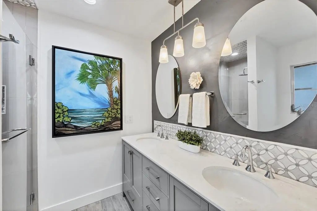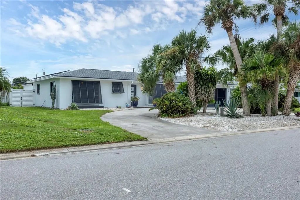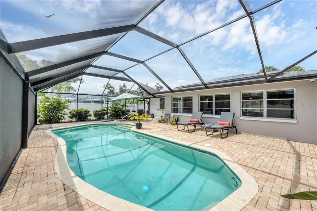This home is special! Welcome to this beautifully updated two-bedroom, two-bath pool home featuring a one-of-a-kind pool cabana—ideal as a home office, art studio or flex space. Inside, you’ll find a wide-open great room floor plan with built-in cabinetry, new flooring, and a chic, neutral palette. The kitchen and both baths were remodeled and provide modern finishes and a fresh, stylish look, including custom closet systems for organized storage. The backyard is designed for entertaining with an oversized lanai space featuring a large free-form pool that was resurfaced/re-tiled in 2022, complete with a new electric heat pump and pool pump. The pool cabana, added in 2022 and equipped with its own mini-split air conditioner, creates a space for work or play. From the main home, view and access the dramatic outdoor shower space surrounded by custom tropical artwork with elevated hardware for the ultimate outdoor shower experience. The property is fully fenced for privacy and includes an oversized garage for all your extras. This home has been thoughtfully updated with a newer roof (2021), new ductwork (2021), updated plumbing with a Manabloc system, new water heater, and solar panels powering the entire house added in 2021 to keep those electrical bills low. Additional improvements include a new air-conditioning system 2022, updated electrical with an outlet for a generator, remodeled kitchen and baths, radiant barrier was added to the attic, and some impact windows were added for peace of mind. In Venice East, a community with a voluntary HOA and no deed restrictions, you’ll have the freedom to bring your boat, RV and the extras. All of this is just minutes from Wellen Park, downtown Venice, Gulf beaches, dining and shopping. This jewel won’t last long—schedule your showing today!