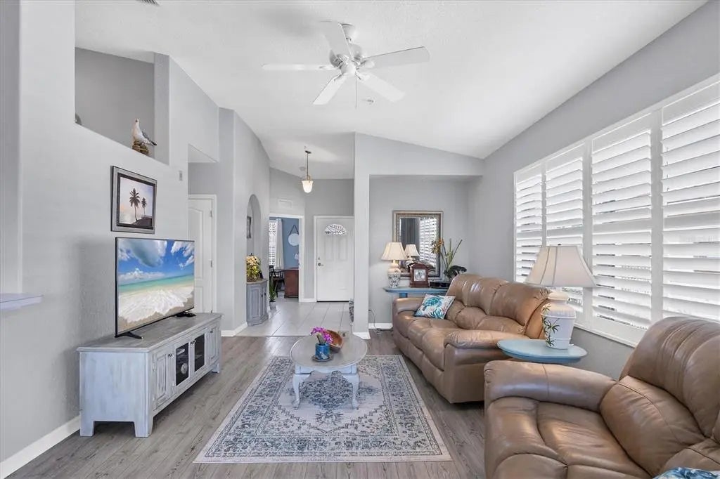 - Interior FeaturesCathedral Ceiling(s), High Ceilings, Kitchen/Family Room Combo, Open Floorplan, Thermostat, Window Treatments