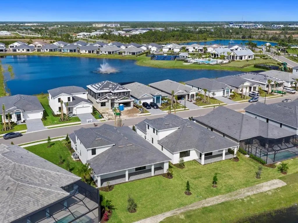 One or more photo(s) has been virtually staged. Welcome to the epitome of luxury living in Solstice at Wellen Park with this exquisite Sanderling Elite Craftsman model by Toll Brothers. Situated on a prime lot overlooking a serene water view, this stunning home offers unparalleled craftsmanship and upscale amenities, making it the perfect retreat for discerning buyers. Key features include, spacious floor plan spanning 3,195 square feet, offering ample space for comfortable living and entertaining, five bedrooms and four full bathrooms, providing flexibility and privacy for family and guests, impressive curb appeal with impact windows, gutters, and a Craftsman-style exterior showcasing timeless elegance. The oak stairs add a touch of sophistication to the grand entrance foyer, tray ceilings in select areas of the home add architectural interest and charm, chef's dream kitchen equipped with high-end appliances, quartz countertops, and a center island for culinary delights, outdoor kitchen prep area and additional covered lanai, perfect for hosting gatherings and enjoying the Florida lifestyle. Enjoy stunning views and tranquility from the spacious backyard overlooking the water. Additional features include natural gas hookup, tile floors, and a spacious three-car garage! Residents of Solstice at Wellen Park enjoy access to a wealth of resort-style amenities, including a clubhouse, fitness center, swimming pool, tennis courts, playground and more! Scenic walking trails and lush green spaces provide the perfect backdrop for outdoor recreation and leisure. This home is conveniently located in the heart of Wellen Park, this offers easy access to pristine beaches, shopping destinations, dining establishments, and cultural attractions. With its prime location and luxurious amenities, this Sanderling Elite Craftsman model by Toll Brothers presents an opportunity to live the life of luxury in one of Southwest Florida's most desirable communities!