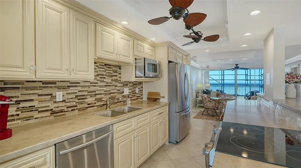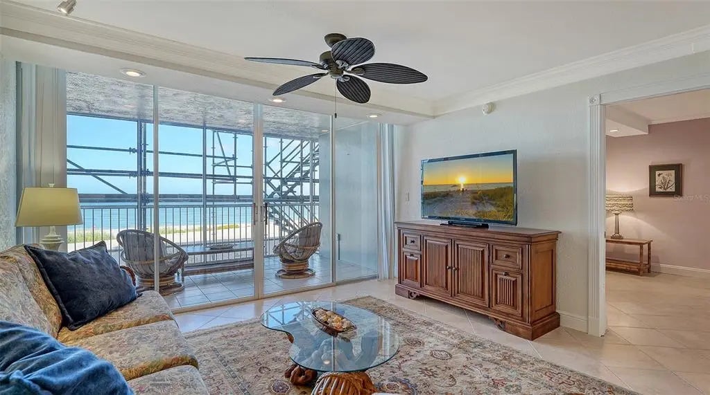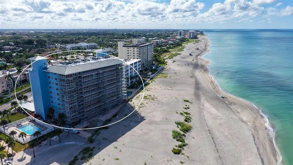 Positioned on the 3rd floor of 555 The Esplanade, this TURNKEY two-bedroom, two-bath condominium offers a front-row seat to the Gulf's endless beauty—where turquoise waters, sailboats, and spectacular sunsets paint the horizon each day. Spanning 1,309 square feet, this light-filled residence captures the essence of coastal living with its open, thoughtfully updated layout and breathtaking full Gulf views from nearly every room. The interiors blend relaxed sophistication and modern comfort, featuring tray ceilings, recessed lighting, impact rated windows and doors, and a soothing neutral palette that complements the surrounding seascape. The updated kitchen is equipped with stainless steel appliances and ample cabinetry, seamlessly connecting to the living and dining areas for effortless entertaining. A newly screened-in private lanai extends the living space outdoors—perfect for morning coffee, sunset cocktails, or simply listening to the gentle sound of the surf. Both bedrooms provide serene retreats, while the primary suite enjoys its own stunning Gulf backdrop. Additional upgrades include a NEW HVAC SYSTEM, NEW WATER HEATER, and a NEW ROOF, ensuring peace of mind for years to come. The community of 49 residences, set directly on Venice Beach, features access to a sparkling pool and private beach , with a newly renovated clubroom and full pool restoration underway—improvements that promise to further enhance the value and appeal of this exceptional Gulf-front property. Ideally located just moments from Historic Downtown Venice, residents enjoy easy access to charming boutiques, coastal dining, marinas, golf courses, live theater, and the city’s rich arts and cultural scene. Offering the BEST VALUE directly on the beach , this residence is more than a home—it’s an invitation to live the Gulf Coast dream, where every day begins and ends with the sound of the sea.