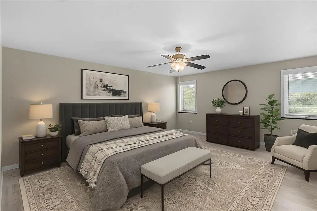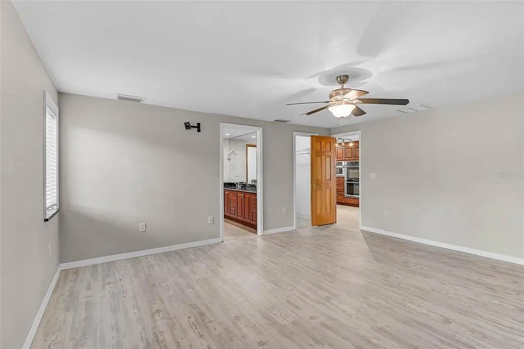 - Interior FeaturesCeiling Fan(s), Living Room/Dining Room Combo, Primary Bedroom Main Floor, Split Bedroom, Walk-In Closet(s)