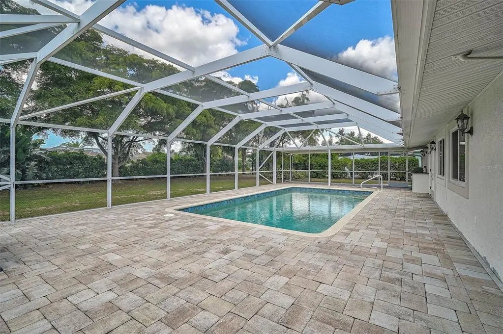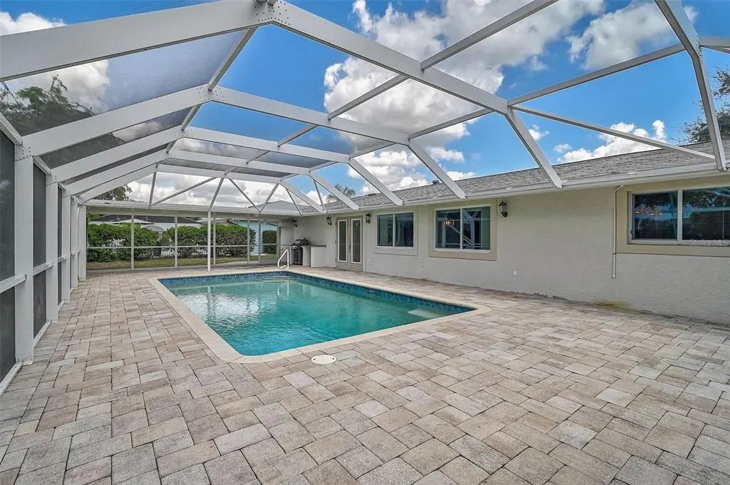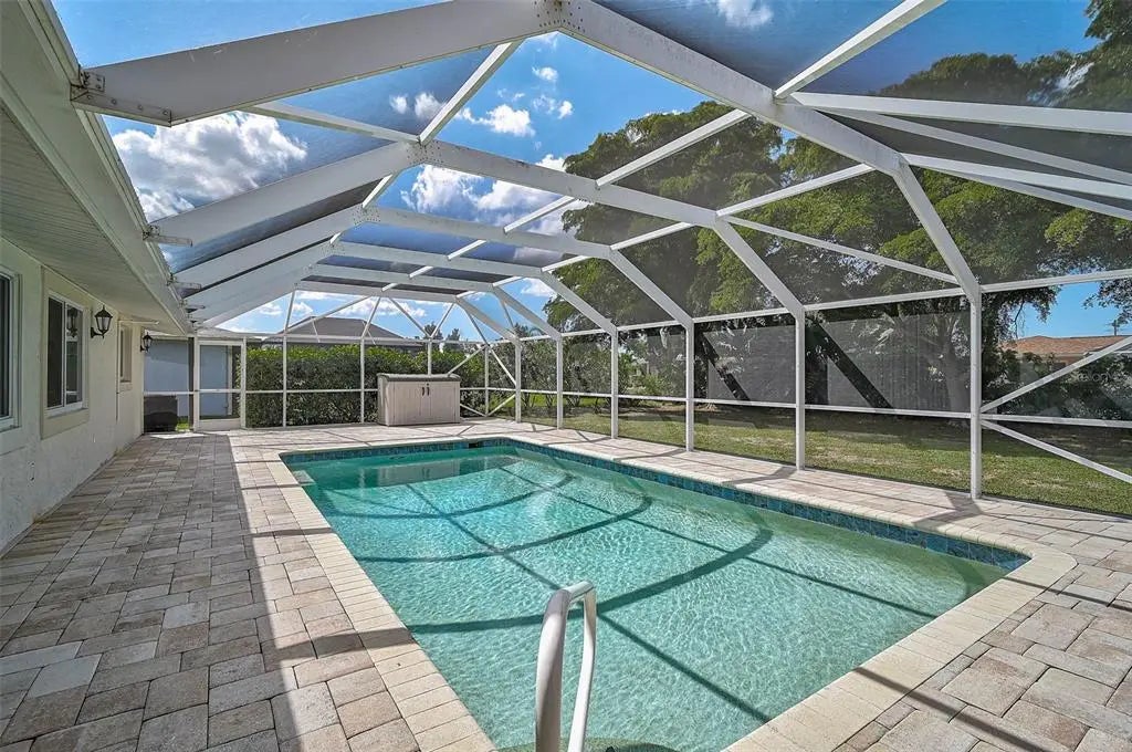 Under contract-accepting backup offers. One or more photo(s) has been virtually staged. Are you planning your next Florida move and want a home that’s both well-built and easy to enjoy? Look no further! This 4-bedroom, 2-bath pool home in Venice Gardens is a standout! Spacious split floorplan design, solid block construction, and everyday comfort come together on nearly a quarter acre in one of Venice’s most conveniently located neighborhoods. The pool and lanai are the centerpieces of this home, where you’ll spend hours swimming, grilling, and entertaining in the Florida sunshine. The screened enclosure with covered lanai area provide plenty of space for outdoor dining and relaxation. Inside, the kitchen features solid-wood cabinet doors and fronts, granite countertops, stainless-steel appliances, and a center cooktop island with stainless steel-and-glass hood. The split-bedroom layout provides privacy and flexibility, with granite topped vanities and tile floor finishes in both baths. With only three years on the roof (2022), impact-rated windows, and being located out of the flood zone add lasting peace of mind during stormy weather. Another plus is that this home is on a cul-de-sac street. With low annual HOA dues, proximity to beaches, boating, golf, dining, and historic downtown Venice, this home combines the Florida lifestyle you want with the quality construction you’ll appreciate every day. Schedule a tour today, this may be just the right home for you.