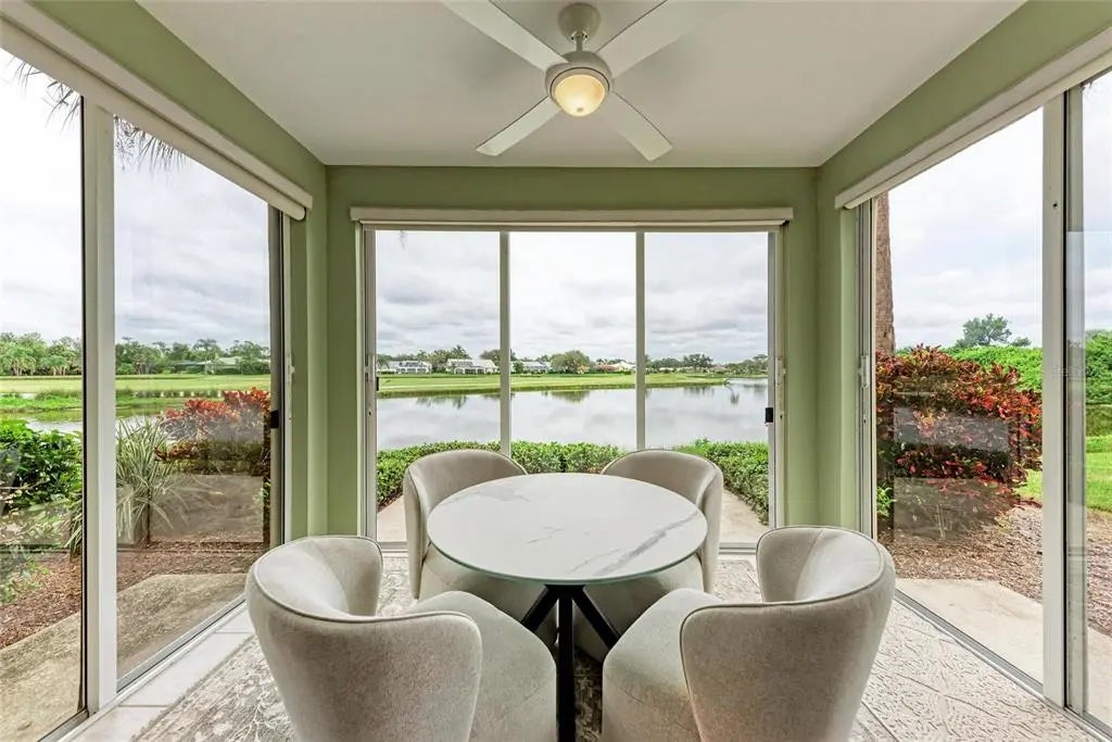 Experience luxurious living with unparalleled views! Step into sophistication with this exquisitely furnished and tastefully adorned ground-floor condominium, which boasts sweeping views of the glistening lake and beautiful golf course. Located on a private cul-de-sac in the desirable Fairway Glen at St. Andrews Park within The Plantation Golf & Country Club. This expansive residence merges comfort, elegance, and a stunning environment. Inside, you will discover a spacious kitchen equipped with stainless steel appliances and granite countertops, along with a welcoming dining area, a bright and airy living room, and an adjacent bonus space, perfect for a cozy reading nook or a den for work or hobbies, all while relishing the breathtaking scenery. Step outside to the screened-in porch and relax with your morning coffee or evening beverage as you take in the tranquil views. This remarkable and pristine property features two generously sized bedrooms and two full bathrooms, providing both privacy and versatility. A one-car garage, an additional designated parking space, and guest parking ensure convenience and practicality. Socialize with friends and neighbors at one of the pools or dine at the esteemed restaurant within the elegant clubhouse. For additional activities, you can opt for memberships to the Plantation Golf & Country Club, which grants access to golf, tennis, pickleball, bocce ball, and a state-of-the-art fitness center with personal trainers. Ideally situated near shopping and dining, and just minutes from Venice's pristine sandy beaches, this residence is perfect for seasonal or year-round living. Additionally, it is a short drive to the vibrant downtown area, featuring charming shops, cafes, and restaurants.