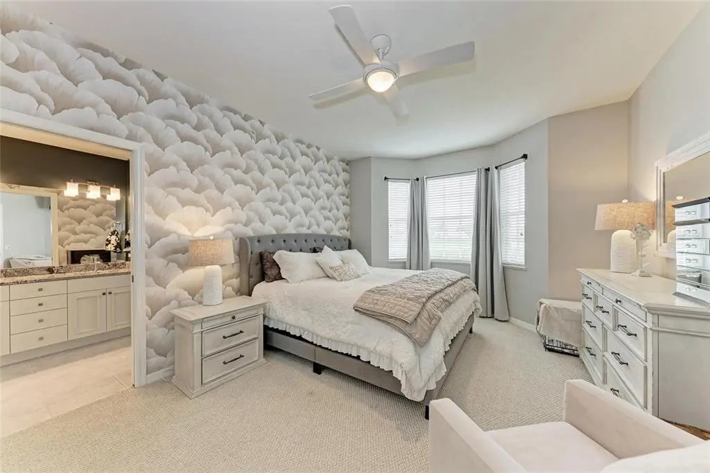 - Interior FeaturesCeiling Fan(s), Eating Space In Kitchen, High Ceilings, Living Room/Dining Room Combo, Solid Wood Cabinets, Stone Counters, Walk-In Closet(s), Window Treatments