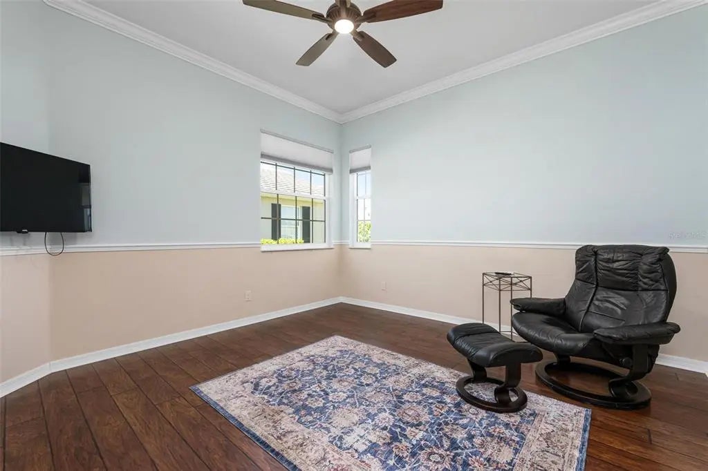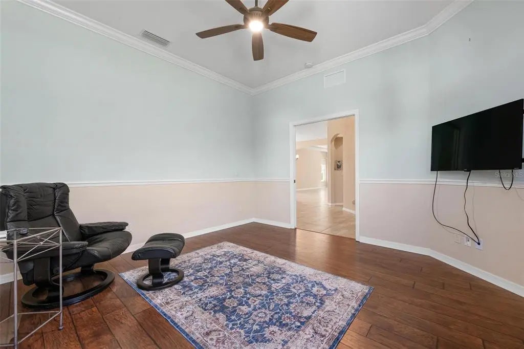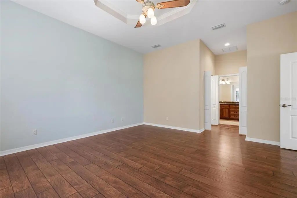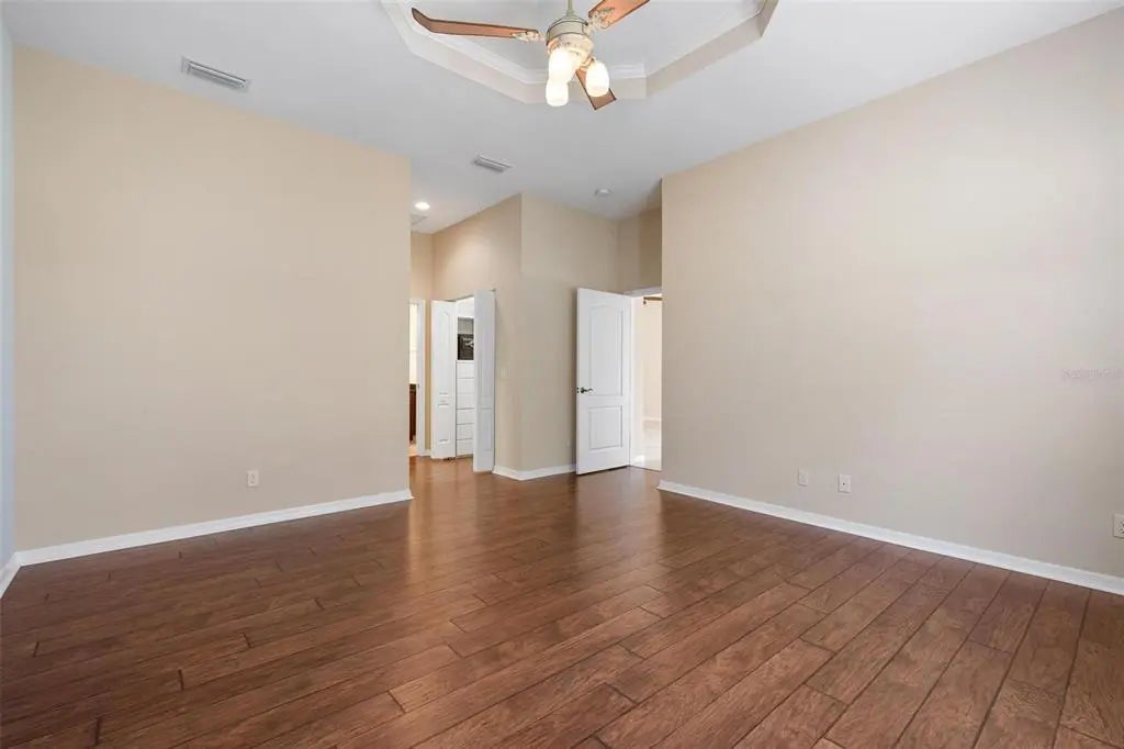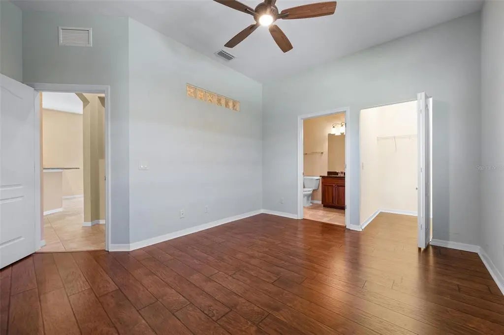 - Interior FeaturesCeiling Fan(s), Crown Molding, Eating Space In Kitchen, Open Floorplan, Primary Bedroom Main Floor, Solid Surface Counters, Solid Wood Cabinets, Vaulted Ceiling(s), Walk-In Closet(s), Window Treatments