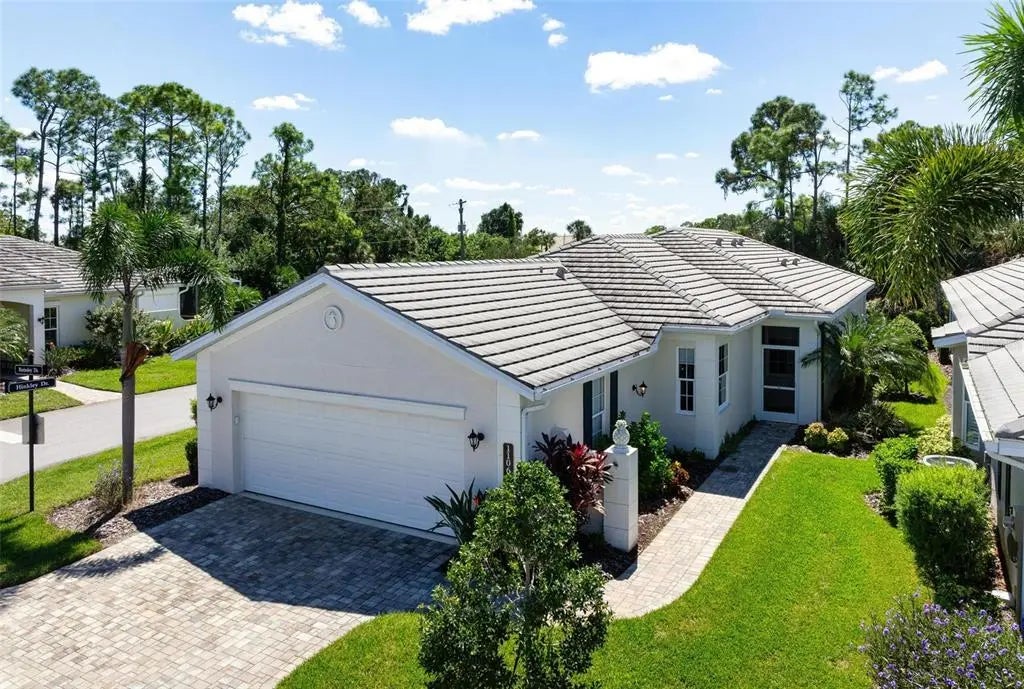 Lovely maintenance-free home in St. Andrews East in "The Plantation Golf & Country Club". Discover worry-free living in this spacious free-standing villa. Roomy kitchen, granite countertops, stainless appliances &, built-in oven. cozy breakfast nook bathed in natural light. Luxurious primary suite featuring dual walk in closets with double sinks, and a large walk-in shower. A flexible layout with split floor plan ensures guest privacy. The second bedroom includes an ensuite bath and walk in closet, while the third bedroom/den/office offers versatile space with a full closet.. Elegantly designed with tray ceilings, crown molding and stylish lighting creates a serene inviting atmosphere. An expansive lanai nearly 800 sf perfect for entertaining or relaxing. HOA fees cover exterior, roof reserves, exterior painting, roof, lawn care, pest control, high speed internet, community pool, clubhouse and management. The Plantation membership is an optional membership with two 18-hole championship golf courses, 13 Har-Tru tennis courts, six pickleball courts, bocce ball, a fitness center, Jr Olympic pool and exceptional dining and activities. Prime location near Gulf Beaches, Wellen Park, Downtown historic Venice, dining, shopping and easy highway access.