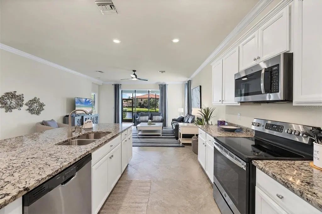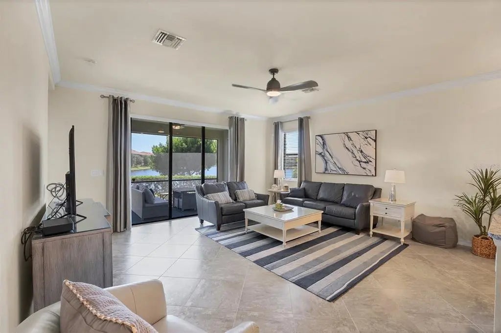 Panoramic lake views in a premier Venice golf community! Discover effortless elegance in this beautifully designed 2 bedroom, plus den residence. Tucked within a sought-after golf course neighborhood, offering the perfect blend of comfort, convenience and resort-style living. Step inside to a bright, open layout where the kitchen shines with white cabinetry, granite countertops, and stainless steel appliances. The living room, master suite, and screened lanai all showcase panoramic views of the tranquil lake, creating the ultimate backdrop for your morning coffee or evening unwind. The HOA takes care of your yard maintenance, so you'll enjoy a beautiful lawn without the work - leaving you more time to enjoy everything this vibrant community and the nearby Wellen Park area has to offer including the Atlanta Braves spring training park, upscale boutiques, and a variety of sidewalk cafes and gourmet restaurants. For those seeking an effortless move, the professionally designed furniture and decor package is available for purchase. Schedule your showing today. Start living the Florida lifestyle!