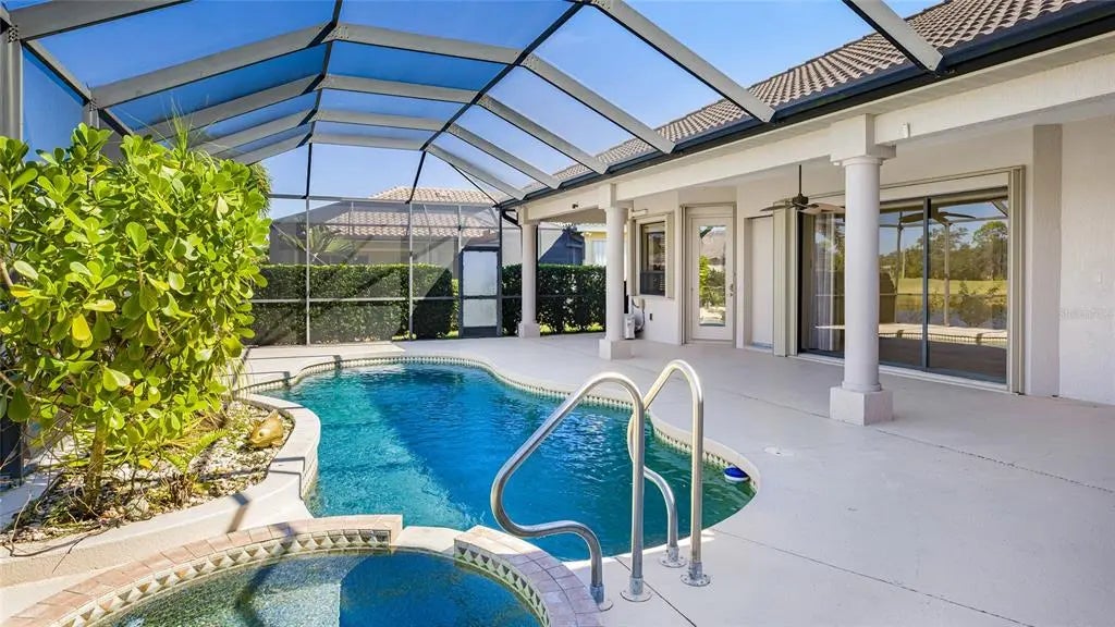 Under contract-accepting backup offers. One or more photo(s) has been virtually staged. Welcome to Pelican Pointe Golf & Country Club, one of Venice’s premier gated communities offering resort-style amenities and a vibrant social lifestyle. This 4-bedroom, 3-bathroom home combines functional design with peaceful lake views and a private screened pool and spa. The open layout features tray ceilings, tile and wood flooring, and multiple sliders that bring in natural light and blend indoor and outdoor living. The kitchen is equipped with Bosch stainless steel appliances, double ovens, granite countertops, a vented range hood, and an under-sink water filtration system. The primary suite includes a walk-in closet and an ensuite bath featuring a steam shower and built-in bench. Additional highlights include a screened front portico that allows cross-breezes through the home, aluminum storm shutters, a whole-house security system, and an automatic backup power generator supporting essential areas of the home. Recent updates include a new Lennox main HVAC and Mitsubishi mini-splits (2025) with Wi-Fi thermostats, plus a new hot water heater (2024). Enjoy relaxing poolside with serene lake views or take advantage of the Pelican Pointe lifestyle—featuring a championship golf course, clubhouse with dining, fitness center, tennis, pickleball, and community events, all minutes from Venice’s beaches, shopping, and historic downtown. **THIS PROPERTY QUALIFIES FOR A 1% LENDER INCENTIVE IF USING PREFERRED LENDER. INQUIRE FOR MORE DETAILS.**