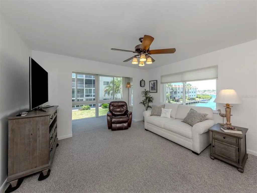 Welcome to Bella Costa, one of Venice’s most sought-after waterfront communities. This beautifully updated 2nd floor corner unit offers sweeping views of the boat basin and Intracoastal Waterway, creating a perfect setting to enjoy Florida’s coastal lifestyle. Conveniently located near the elevator and stairs, this residence combines comfort, style, and accessibility. Inside, you’ll find a thoughtful layout with 2 bedrooms and 2 bathrooms, for both relaxation and entertaining. Both bedrooms have walk-in closets boasting custom built-in cabinetry. The kitchen is equipped with stainless steel appliances and opens into the living area, where natural light fills the space. An extra front sitting area provides flexibility for a reading nook, loveseat, or home office, and currently fits a full bookshelf with ease. The condo also features a brand-new Bosch stackable washer and dryer, new water heater (2024), and RSG plumbing (2024) for added peace of mind. The carports throughout the community were replaced in 2024 as well. Bella Costa’s location is unmatched – just a one-mile walk to Venice Beach, and close to the Venice Theatre, Venice Performing Arts Center, dining, and boutique shopping on historic Venice Avenue. This active community offers a clubhouse, pool, and social activities, making it a welcoming place to call home.