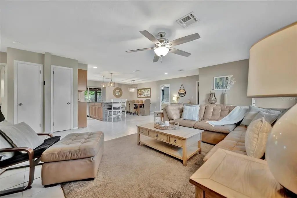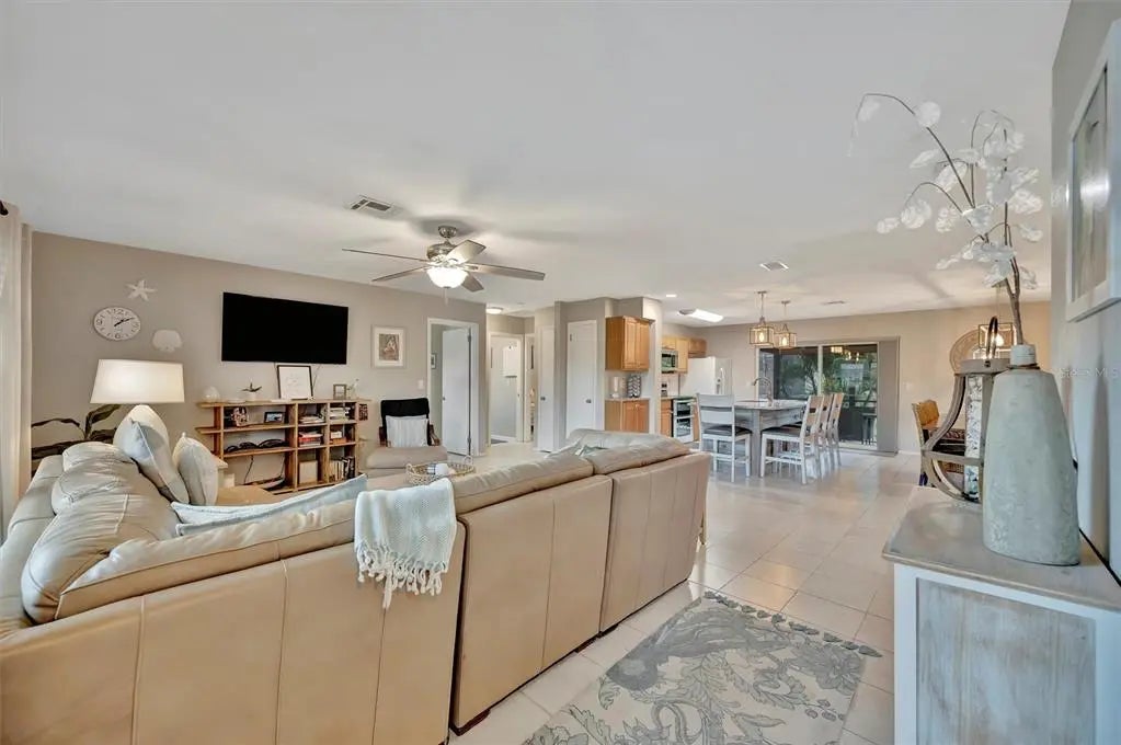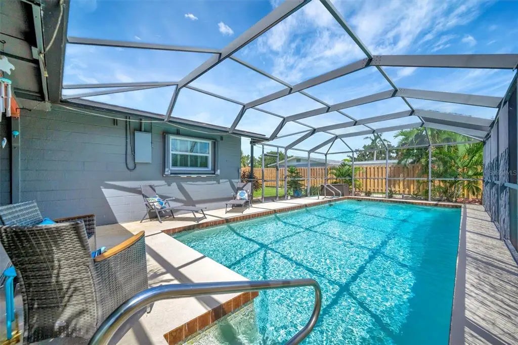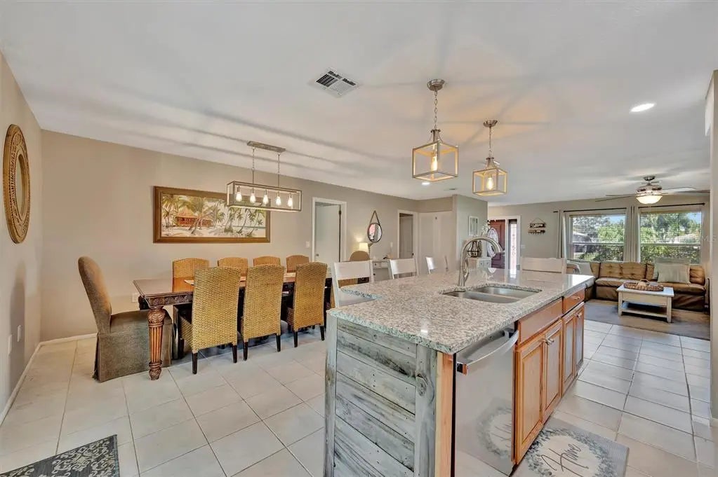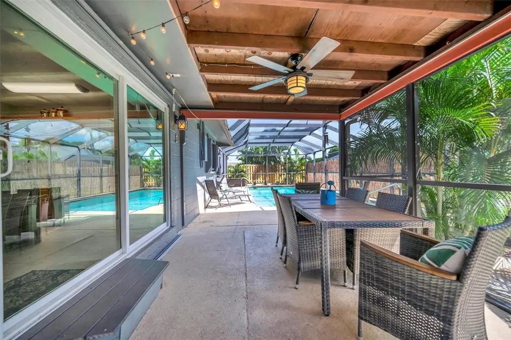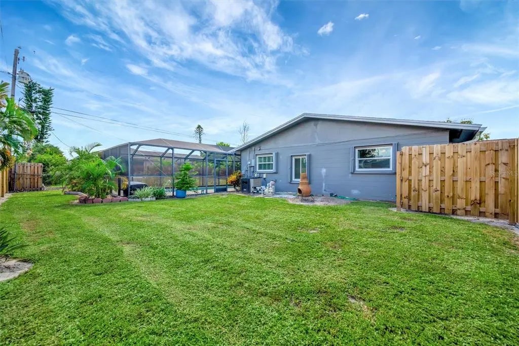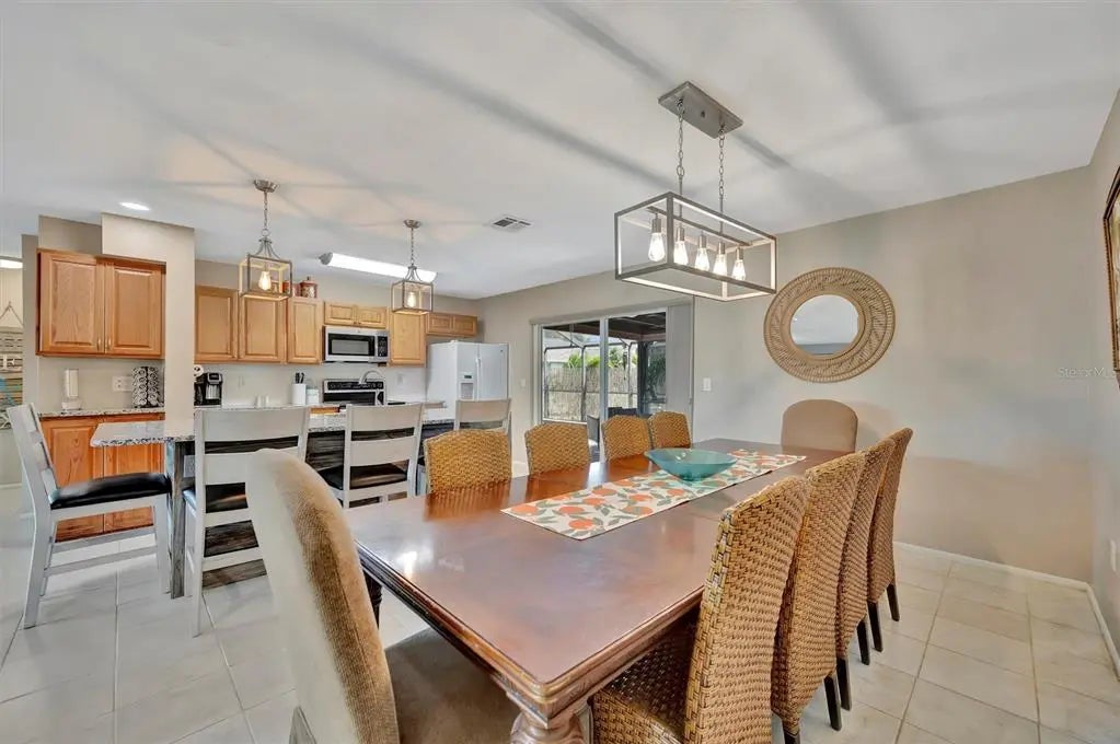 Enjoy the laid-back Florida lifestyle in this turnkey furnished South Venice POOL home on a rare triple lot! With plenty of room for your RV, boat, or extra vehicles, this 3-bedroom, 2-bathroom retreat has no HOA and sits in an X flood zone, so no flood insurance is required. Step inside this coastal-inspired home and discover a bright, open floor plan designed for entertaining. The spacious living room flows effortlessly into the dining area and updated kitchen, featuring wood cabinetry, granite countertops, and newer appliances. Just beyond the hurricane-impact sliding doors, you’ll find your private oasis — a huge screened-in, heated saltwater pool with a covered lanai perfect for outdoor dining and relaxation. The split floor plan offers privacy and comfort, with two guest bedrooms and a full bath on one side, and the primary suite on the other — complete with a walk-in closet, en-suite bath with walk-in shower, and direct access to the pool area. Enjoy peace of mind with impact windows and doors, accordion shutters, a 2020 AC and ductwork replacement, newer pool heater, and a fully fenced backyard. A detached workshop with power adds even more versatility — ideal for storage, hobbies, or your tools and toys. Ideally located within walking distance to Shamrock Park & Nature Center and just minutes from Downtown Venice, Gulf beaches, and the South Venice Boat Ramp & Ferry, where residents can access a private beach through an optional membership — this home truly captures the best of coastal Florida living. Sold turnkey furnished — just bring your suitcase and start enjoying paradise!