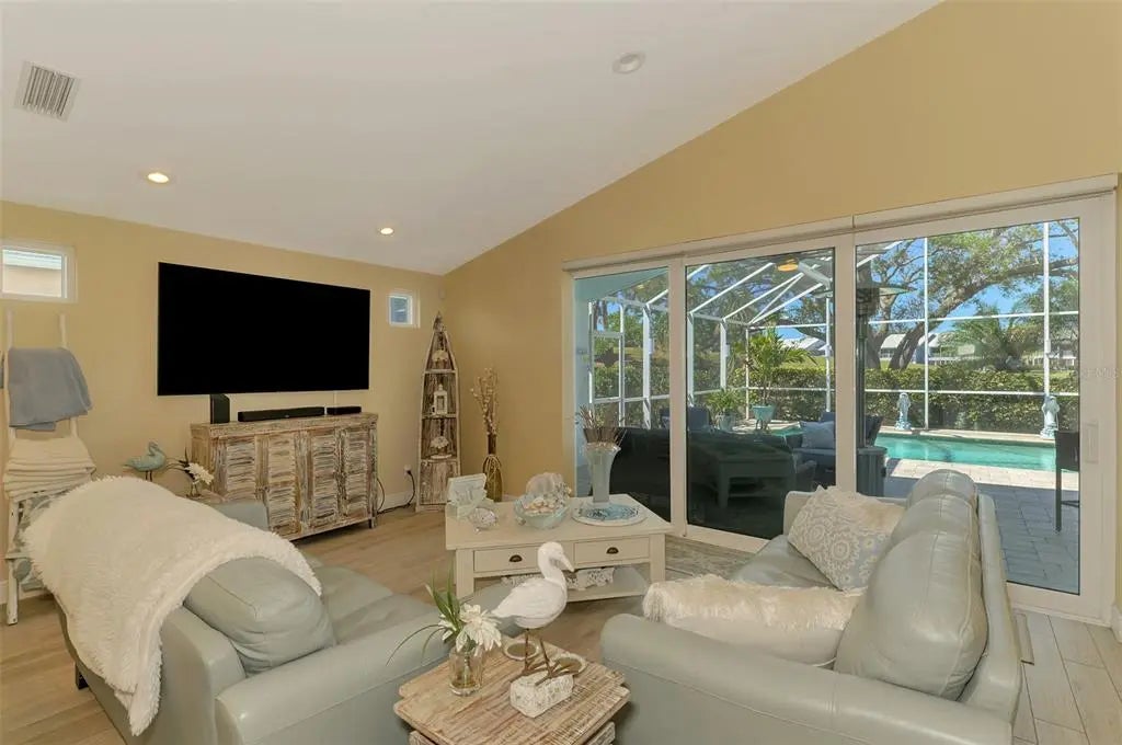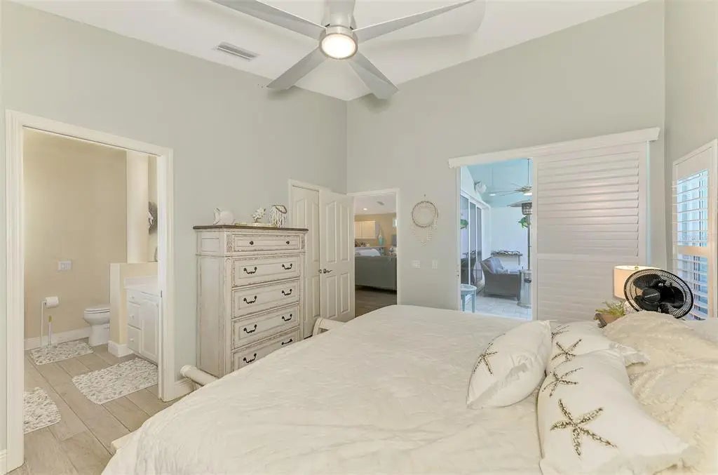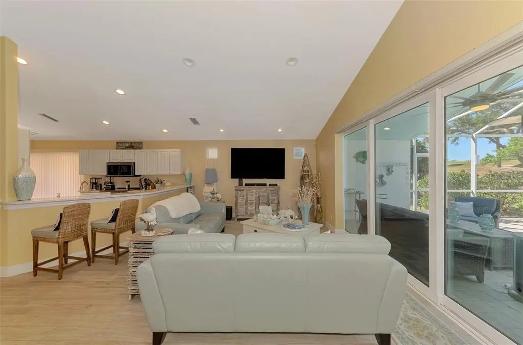 You have found your piece of paradise! This meticulously maintained 3-bedroom 2-bath pool home with a 2 car garage is located in Bermuda Club West in Plantation G&CC. Step inside and you are greeted by an open floor plan with vaulted ceilings, beautiful design features and tons of natural light and lighting. There is a dining area perfect for a quiet dinner or for entertaining guests. The comfortable living room leads out to the screened in lanai complete with heated, salt water pool, with specialty lighting, wi-fi outdoor speakers, and views of the golf course. The pool is west facing so you will also enjoy gorgeous sunsets. The pool pump, auto fill system, and pool heater are new and the heater can be controlled by an app on your phone. Coming down for the week? Turn on the heater from your phone and the pool is warm when you get here! The kitchen opens up to the rest of the living area and has a breakfast bar perfect for guests to gather around. It also boasts brand new granite counter tops! There is an eat-in-space for breakfast, a double door pantry for plenty of storage, stainless steel appliances, and a sliding door leading to a patio that's the perfect space for your grill. The master suite offers another door to the outdoor area and there is a walk-in closet. The en-suite bathroom has a separate shower and garden tub. The two guest bedrooms are well sized and have walk-in closets.