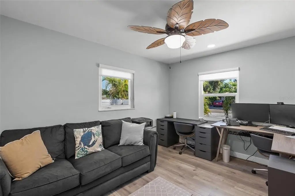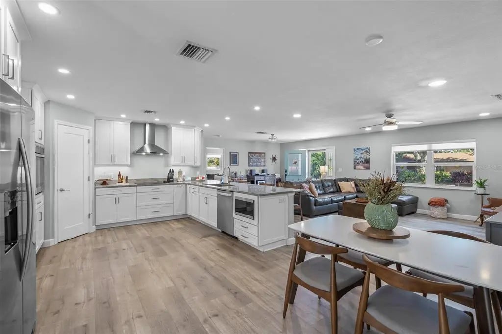Stunningly Remodeled Home on Venice Island – No Flood Zone, No HOA! This beautifully remodeled residence on the Island of Venice offers modern living in one of Florida’s most desirable coastal communities — all without HOA fees or flood zone concerns. Completely renovated in 2018, this home features extensive updates, including: New roof, Storm-rated impact windows and doors, Updated plumbing and sewer lines, New electrical and HVAC systems, Custom cabinetry and modern lighting fixtures, Luxury vinyl plank (LVP) flooring throughout, New hot water heater, Expanded garage with impact-resistant door, Spacious indoor laundry room. The interior showcases a modern open-concept design, highlighted by a chef’s kitchen with a large breakfast bar and high-end finishes. The split floor plan provides privacy, featuring an incredible primary suite with direct access to the expansive backyard. The primary bath includes an oversized shower, dual vanities, and a generous walk-in closet. Two additional bedrooms offer abundant natural light and comfortable living space. The outdoor area is a true highlight, featuring two porches — one open and one with a 20x10 aluminum louvered pergola — plus a newer vinyl privacy fence and 8x8 TUFF SHED for extra storage. The oversized backyard provides plenty of room for a future pool, outdoor kitchen, or custom entertainment area. Located within walking distance to Venice Island’s charming restaurants, shops, Publix, and one block away from the Venetian Waterway Park, this home offers the perfect blend of convenience and coastal living. Enjoy a leisurely stroll to Historic Downtown Venice or the Venice Performing Arts Center, with Venice Beach just two miles away. This home sustained no hurricane damage and remains safely outside the flood zone — a rare find on the Island! Don’t miss this opportunity to experience the best of the Venice Island lifestyle.