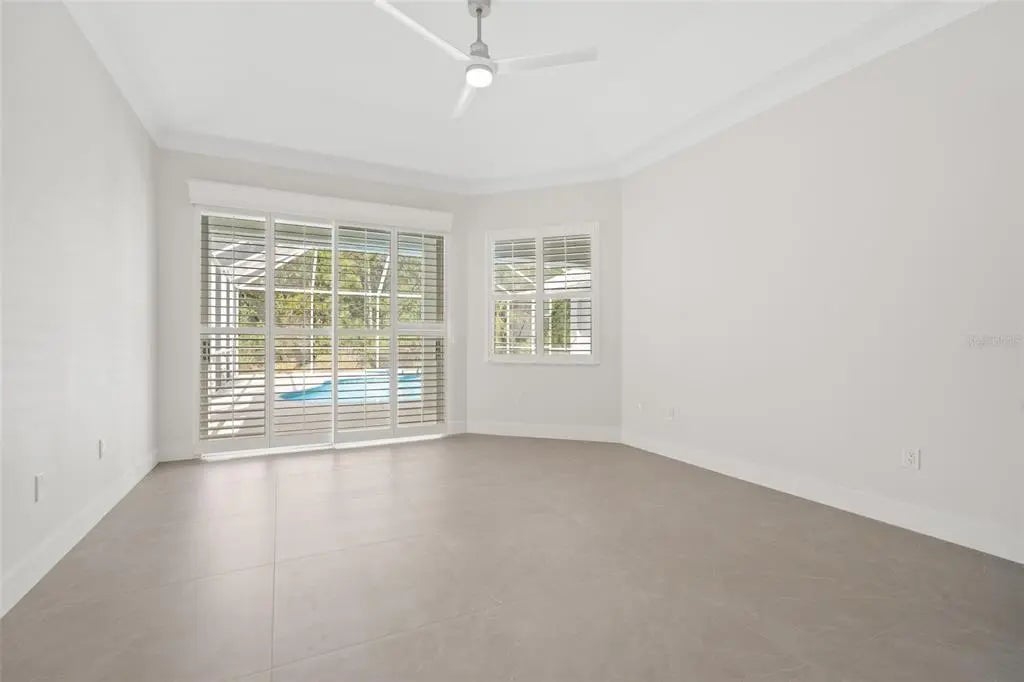- Interior FeaturesCeiling Fan(s), Crown Molding, Eating Space In Kitchen, High Ceilings, Open Floorplan, Primary Bedroom Main Floor, Split Bedroom, Thermostat, Walk-In Closet(s), Window Treatments