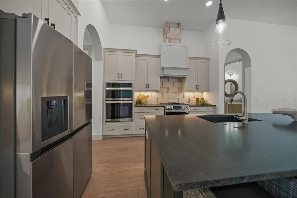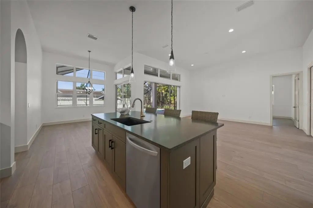 MODERN LUXURY LIVING ON VENICE ISLAND – NEW CUSTOM HOME. Discover the perfect blend of modern elegance, comfort and functionality in this brand-new 4-bedroom, 4.5-bath custom home, built by Caithness Construction LLC. Located just minutes from Venice Beach and historic Venice Main Street, this 2,800 sq ft residence offers an unparalleled Florida Gulf Coast lifestyle. Step inside to an open-concept floor plan that effortlessly unites indoor and outdoor living. At the heart of the home is a gourmet kitchen featuring custom cabinetry, granite countertops, a large island with a Karran granite sink, a walk-in pantry and premium stainless-steel appliances, including an LG gas range and designer hood – perfect for entertaining and everyday living. The owner’s suite offers a peaceful retreat with views of the tranquil pool and a luxurious ensuite bath. The main level also includes a guest bedroom with full bath, a dedicated home office/den, laundry room, and a private half bath. Upstairs, two additional bedrooms with walk-in closets and ensuite baths open to a versatile loft/bonus area, ideal for family, guests, or entertainment. Outside, the private outdoor oasis features a saltwater pool with pebble sheen finish, waterfall feature and sun shelf, Travertine tile decking, No-See-Um high-density screened cage, and an outdoor kitchen rough-in—ready to be your dream entertaining space. Constructed with quality and attention to detail, this home has solid core interior doors with modern casings and 6-inch baseboards throughout. The home also includes impact-resistant windows and sliders, insulated garage doors, and spray foam insulation for enhanced energy efficiency. For added peace of mind, both the home and street elevations exceed current flood zone requirements. Enjoy easy access to the Venice Island lifestyle – walk, bike, or ride your golf cart to the beach, boutique shops and restaurants, Venice Theater, Farmer’s Market, Venice Jetty's and the Venice Performing Arts Center. Don't miss this rare opportunity to own a brand-new, move-in ready home in one of Florida’s most vibrant coastal communities.