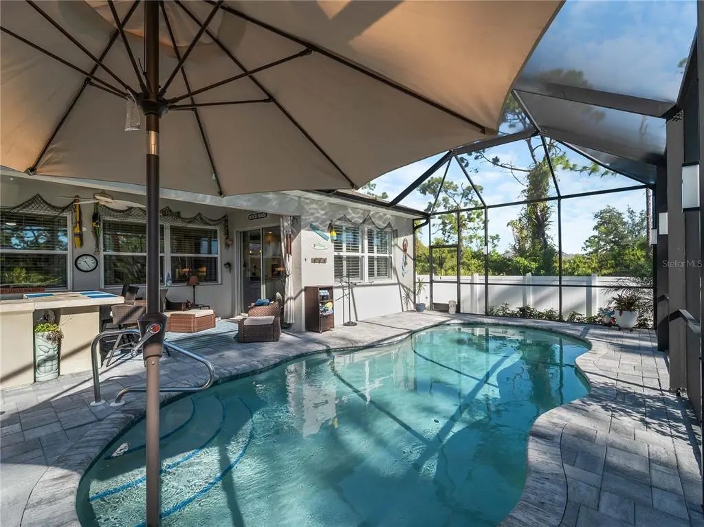 Step into your dream lifestyle home and experience Florida living at it's finest with this stunning 4 bedroom/2 bathroom/2 car garage, fully fenced backyard, heated, saltwater pool home with outdoor kitchen and backyard shed for sale in highly desirable South Gulf Cove in Port Charlotte! Beautifully maintained home with lots of privacy awaits you along with lush landscaping in your new screened in backyard with luxury pavers, comes with a fully equipped outdoor kitchen with a bar, cabinetry, gas grill, sink, refrigerator and sparkling heated saltwater pool for your year round outdoor enjoyment! Natural daytime light flows throughout the home in it's open floorplan and airy layout with many large windows, vaulted ceilings and high (8 foot) doorways. Gourmet kitchen features upgraded high end appliances, upgraded cabinetry and quartz countertops! All bedrooms are large with plenty of closet space and room. Master bedroom has a large walk in closet, secondary bedrooms all have large built in closets. Home is conveniently located close to shopping, fantastic restaurants and schools, several award winning beaches and medical facilities and Spring Training baseball! Home is on city water and sewer. Come see for yourself and don't wait because it may be gone if you wait too long!
