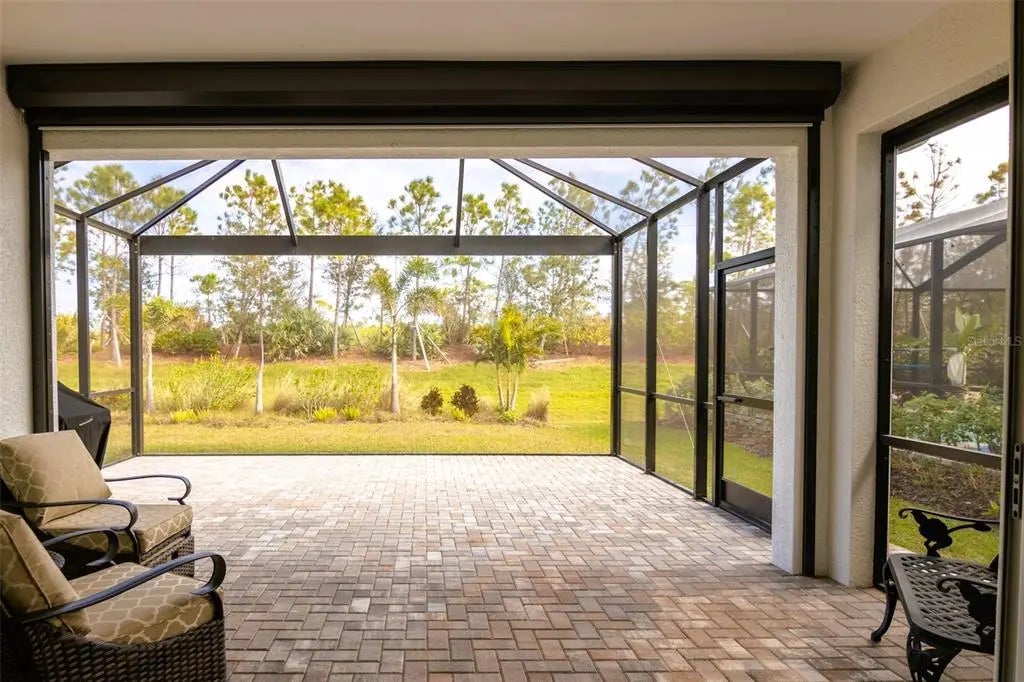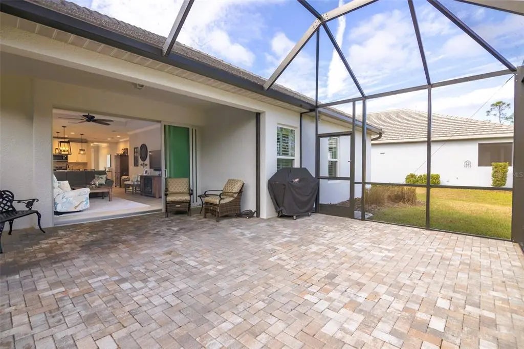 Step into resort-style living with this meticulously upgraded Fresh Spring model by Neal Homes, nestled in the gated Grand Palm community in Venice, Florida. Better than new, this 3-bedroom, 2-bath plus den home combines timeless design with functional upgrades that make everyday living easy and elegant. Inside, discover an open floor plan filled with natural light, enhanced by coffered ceilings and crown molding in primary bedroom and living area, plantation shutters, and 8-foot doors. The chef's kitchen shines with quartz countertops, solid wood soft-close cabinetry, farmhouse sink, tile backsplash, and accent lighting above and below the cabinets. The primary suite features a walk-in closet with custom built-ins, hand made mirrors and a spa-like bath with dual sinks and walk-in shower. Two guest rooms share a full bath with dual sinks, and the den with French doors is ideal for that home office or hobby space. Enjoy Florida evenings on the extended screened paver lanai with Kevlar hurricane screens and peacefull landscaped views. Added upgrades include impact-rated windows and doors, ship-lap entryway, epoxy-finished garage floor, Safe Rack ceiling storage in garage, additional cabinets in laundry room, water softener, RO drinking water and ice maker, wired security, and more! Residents of Grand Palm can enjoy 28 miles of nature trails, resort and lap pools, splash park, Adventure Lake, which is kayak-friendly, pickeball, tennis, and two dog parks. HOA fees include lawn care and community amenities, making Florida living simple. Located just minutes from Venice's historic downtown, Gulf beaches, CoolToday park and the new Wellen Park downtown, this home also offers easy access to I-75 and Tamiami Trail. Move-in ready, beautifully maintained, and never affected by storms or flooding - Make this your Florida home for living at its best!
