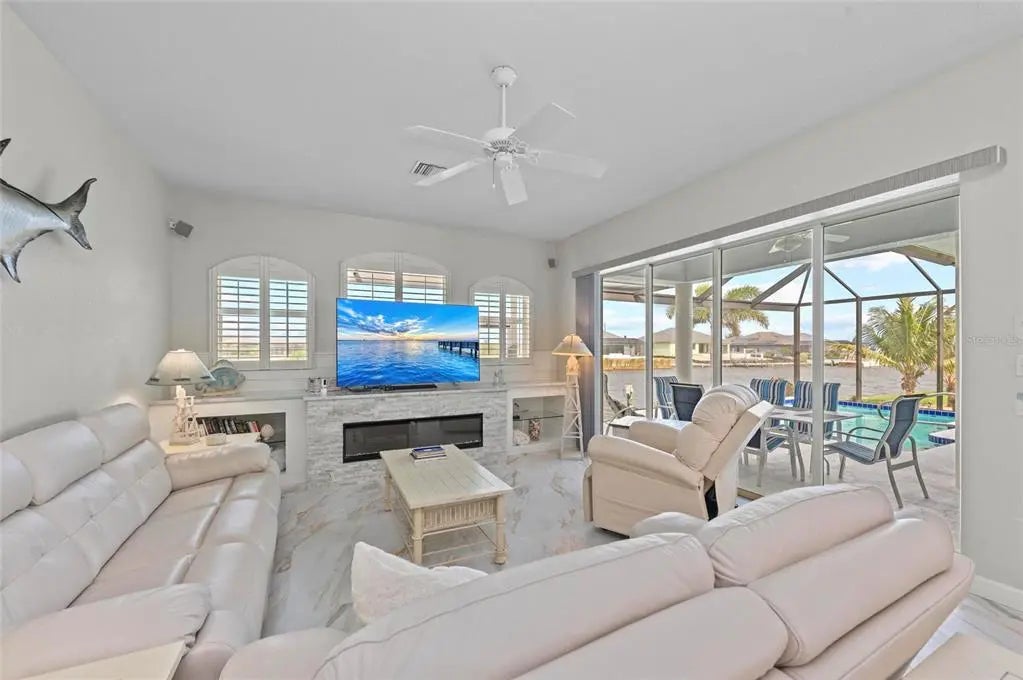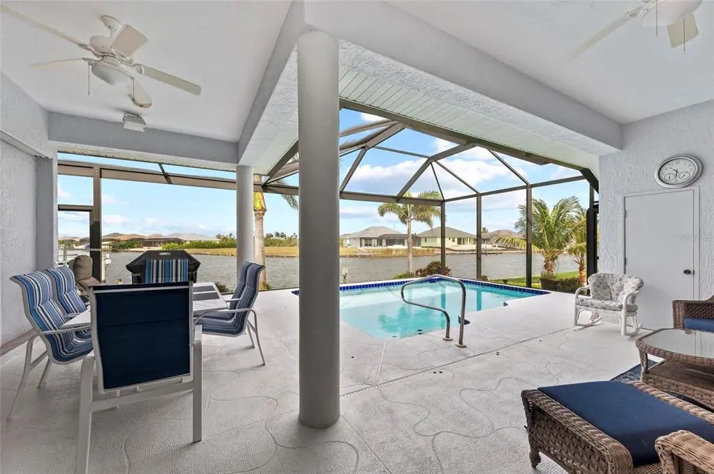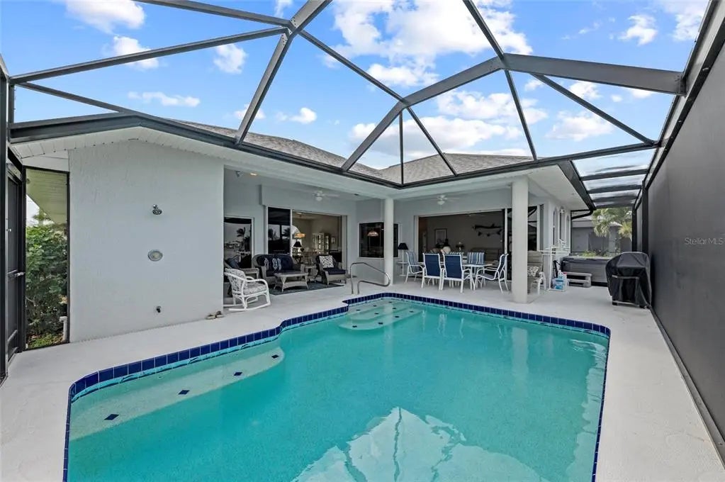 With more than 83 feet of pristine water frontage, this stunning home captures the perfect blend of modern luxury and coastal charm. Originally built in 2002 and completely renovated in 2022, every detail has been thoughtfully planned to showcase comfort, style, and the beauty of its waterfront setting. This fully furnished 3-bedroom, 2.5-bathroom, handicapped accessible retreat offers direct access to the water and boasts a brand-new dock (2024), equipped with water, electricity, and a 9,000 pound capacity boat lift. Two underwater snook lights invite evening fishing adventures, where you can reel in tarpon, snook, and redfish just steps from your backyard. Enjoy stunning sunset views from the west-facing lanai, where a screen-enclosed, resurfaced salt pool (2020) with a heater and a child safety fence, and a brand-new salt water hot tub (2024), create the ultimate private oasis. The entire lanai was rescreened in 2025, ensuring uninterrupted enjoyment of the peaceful waterfront breeze. Inside, the home welcomes you through elegant stained-glass French doors into a formal dining area crowned with a chic chandelier. Beyond, the open-concept living space impresses with soaring ceilings, crown molding, and tile flooring. Thoughtfully designed for comfort and entertaining, this area seamlessly connects the living room, kitchen, and dining spaces. Expansive sliding glass doors blur the line between indoors and out, creating the ultimate Florida lifestyle experience. At the heart of the home, the completely remodeled gourmet kitchen is a chef’s dream. It showcases custom Welbourne cabinetry, quartz countertops, a decorative tile backsplash, and striking pendant lighting over the breakfast bar. Top-of-the-line GE Café Series appliances—including a double oven, induction cooktop, dishwasher, and microwave—pair with under-cabinet lighting to enhance both functionality and ambiance. The primary suite serves as a serene retreat with direct pool access, a tray ceiling, and a spa-like en suite bath featuring dual vanities, a soaking tub, a walk-in shower, and full handicap accessibility. The guest bedrooms feature stylish vinyl plank flooring, offering both comfort and durability. A reverse osmosis water softener system (2022) ensures top-quality water throughout the home, while a security system adds peace of mind. Meticulously maintained, the home’s exterior was freshly painted in 2023 and features a well-fed irrigation system that keeps the lush landscaping vibrant year-round. Whether you're savoring the tropical ambiance, soaking in the panoramic water views, or setting sail from your private dock, this is Florida waterfront living at its finest. Don’t miss this rare opportunity to own a slice of paradise! Come see, come sigh and make this waterfront home your own!