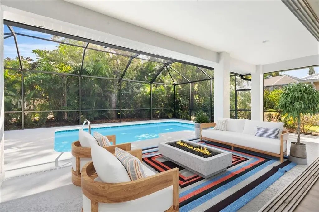 One or more photo(s) has been virtually staged. A Lake of the Woods Beauty! Walk through the double leaded glass front doors of this beautifully maintained J & J–built home which features a remodeled kitchen and updated bathrooms, combining timeless craftsmanship with modern style. Enjoy peace of mind with a BRAND NEW TILE ROOF and a sparkling resurfaced pool—perfect for relaxing and entertaining. With a quadruple pocket sliding glass door from the great room to the pool, your indoor/outdoor space is seamless and oh so inviting! The pool area has an expansive covered deck area as well as plenty of room to lounge in the sun. The pool cage was replaced in 2025 and there is an outdoor shower as well. Don't miss seeing the outside entrance to a bonus air-conditioned workshop, craft room, art studio, or storage area that is accessible from the pool area. Details like crown molding and luxury vinyl plank flooring complete the interior and make this home "move-in-able". Located in a desirable community known for its mature landscaping and convenient access to shopping, dining, and top-rated schools. Lake of the Woods also has a clubhouse, pickleball and tennis courts and a community pool as well as lakes for residents to cast a line! No CDD fee and reasonable HOA fees make this a fabulous place to call home, and it's only 5 miles to downtown Wellen Park or 6 miles to the Wellen Park Cool Today Stadium!