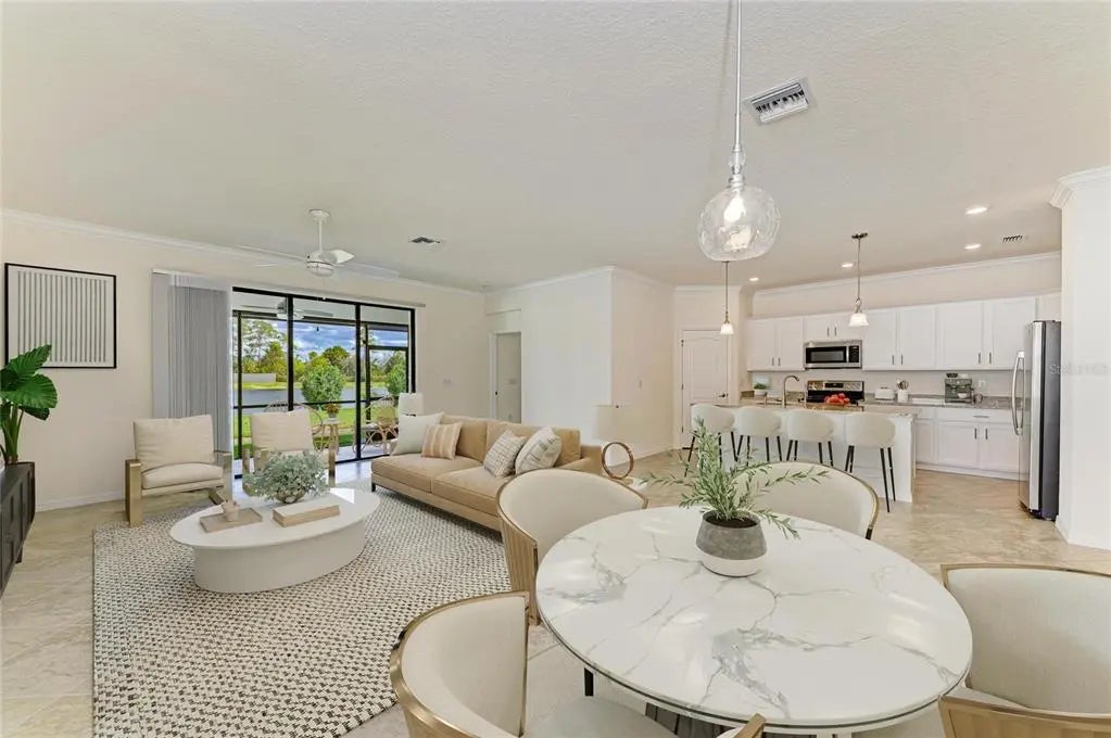 One or more photo(s) has been virtually staged. Welcome to one of Venice’s most desirable and peaceful communities. This beautiful 3-bedroom, 3-bathroom lakeview home offers the perfect blend of comfort, style, and modern Florida living. Step inside to discover a spacious open-concept floor plan filled with natural light. The gourmet kitchen features granite countertops, stainless steel appliances, and a large island perfect for entertaining. The living and dining areas open directly onto a screened lanai overlooking the tranquil lake — ideal for morning coffee or evening sunsets. The primary suite includes a walk-in closet, double vanities, and a luxurious walk-in shower. Two additional bedrooms provide plenty of space for family or guests, each with access to full bathrooms for privacy and convenience. Enjoy low-maintenance living with a newer construction home built in 2019 on a slab foundation, energy-efficient windows, and modern HVAC systems. The property also features an attached two-car garage, manicured landscaping, and access to community sidewalks and green space. Located just minutes from downtown Venice, Gulf beaches, shopping, dining, and I-75, this home combines serenity with convenience.
