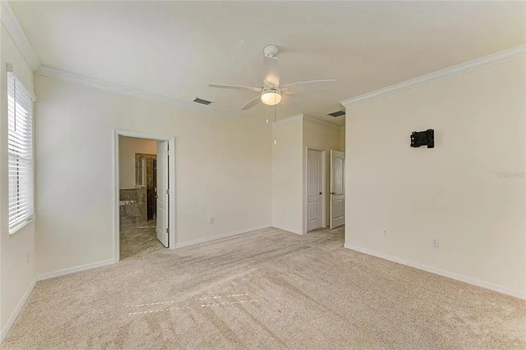 - Interior FeaturesCeiling Fan(s), High Ceilings, Living Room/Dining Room Combo, Primary Bedroom Main Floor, Solid Surface Counters, Solid Wood Cabinets, Stone Counters, Walk-In Closet(s), Window Treatments