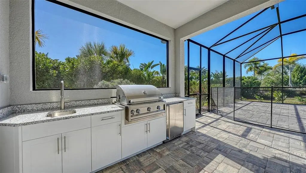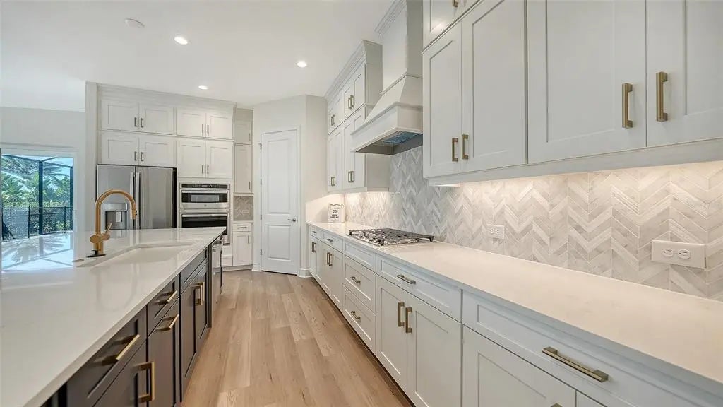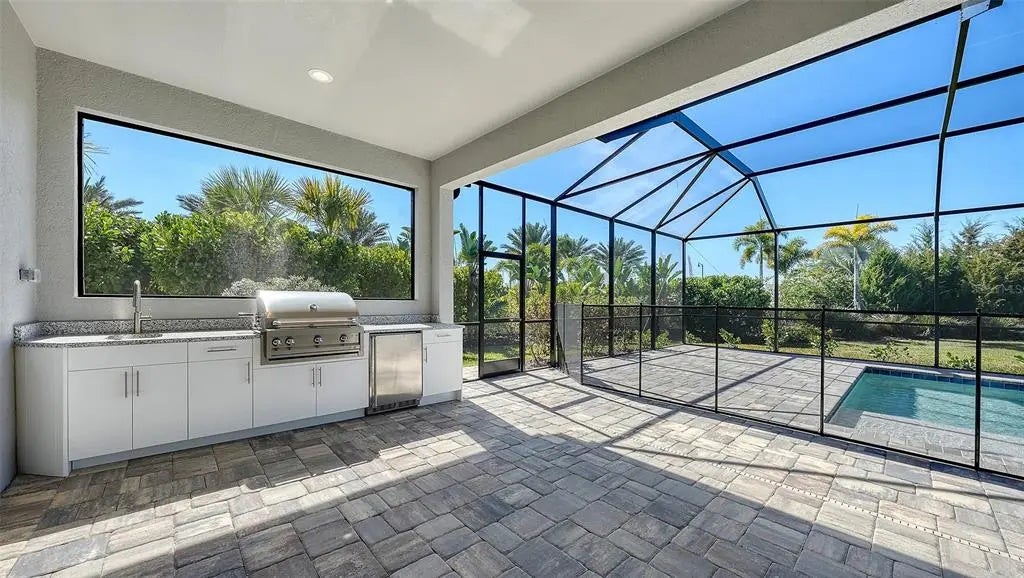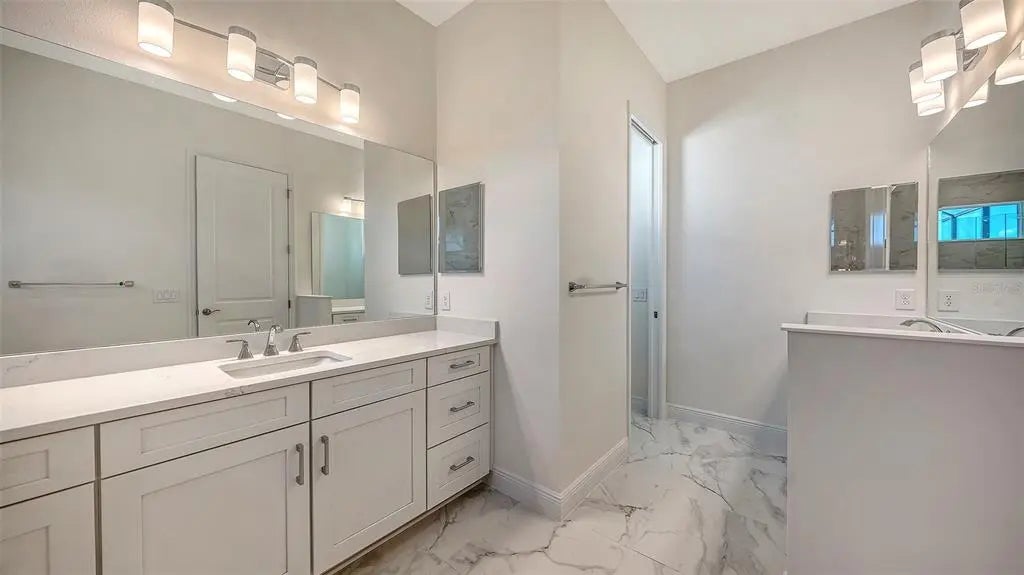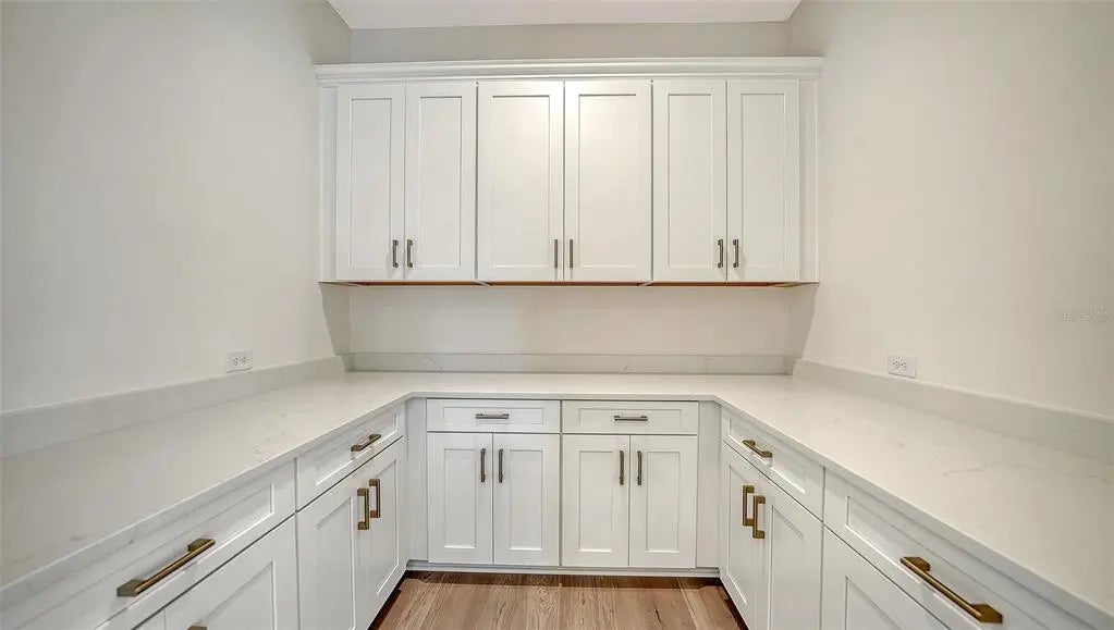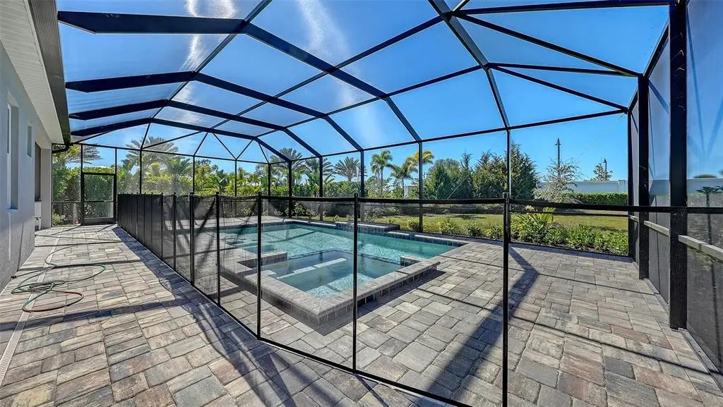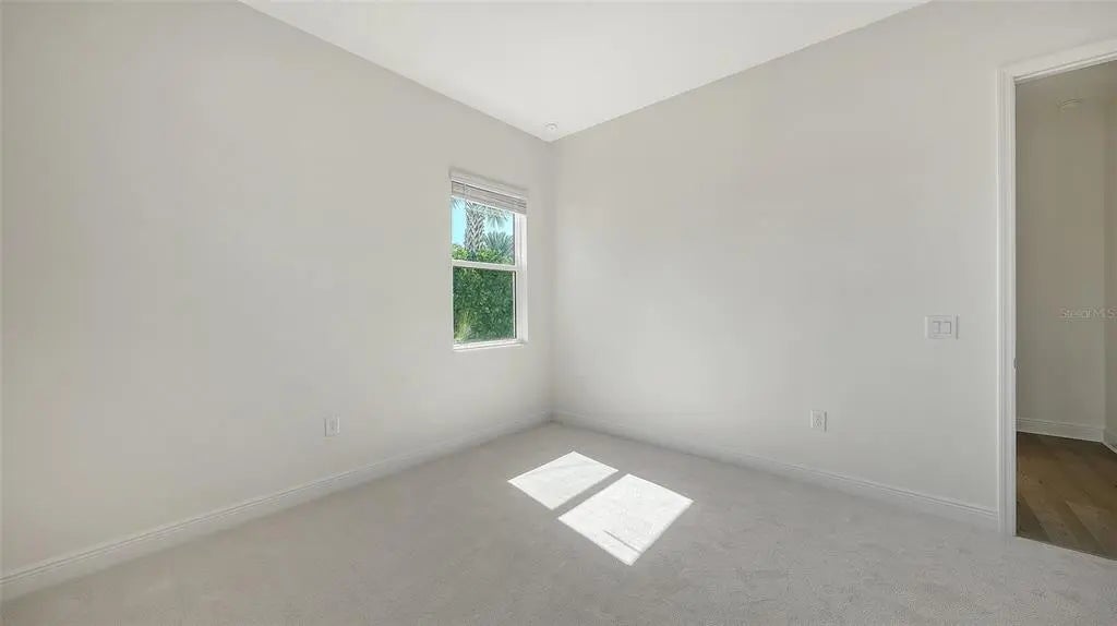 Step into The Shoreline, a beautifully designed open floor plan that blends comfort, luxury, and functionality. The spacious great room opens seamlessly to the pool and spa area through stunning impact-resistant sliding glass doors, creating the perfect indoor–outdoor living experience. A convenient pool bath is located near the master suite and great room. The home includes a chef’s kitchen with a large butler’s pantry and corner pantry for extra storage, plus a utility room door leading directly to the owner’s closet and bedroom. Situated on a corner homesite with lush landscaping and a privacy wall, this home offers exceptional privacy and is located near the entrance for quick access to Downtown Wellen Park.