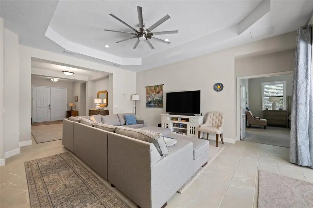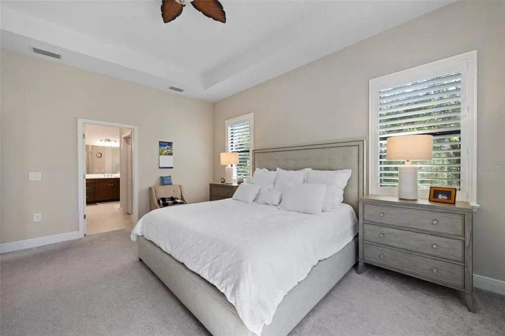 - Interior FeaturesCeiling Fan(s), Eating Space In Kitchen, High Ceilings, Open Floorplan, Solid Surface Counters, Split Bedroom, Tray Ceiling(s), Walk-In Closet(s), Window Treatments