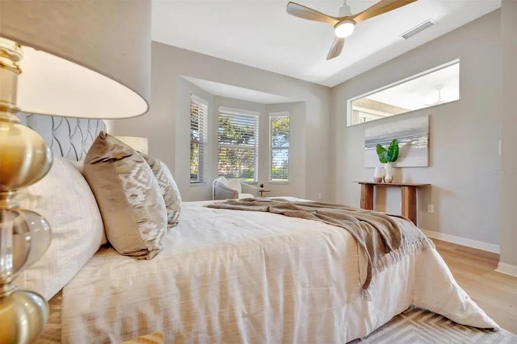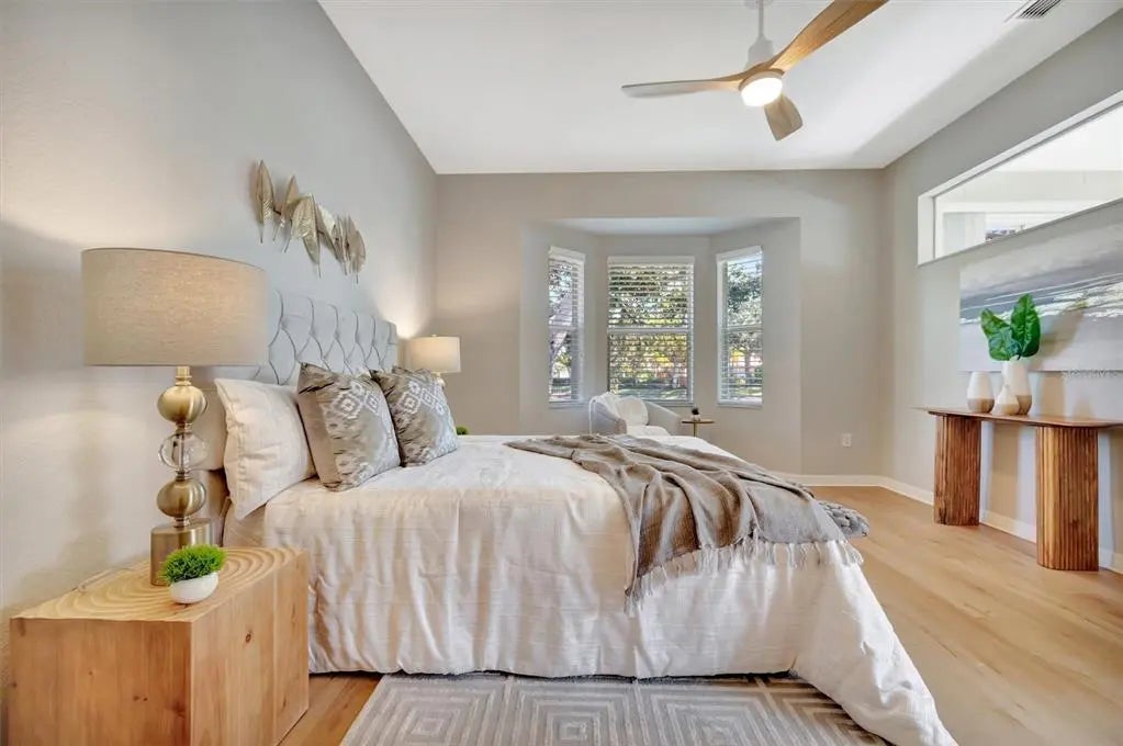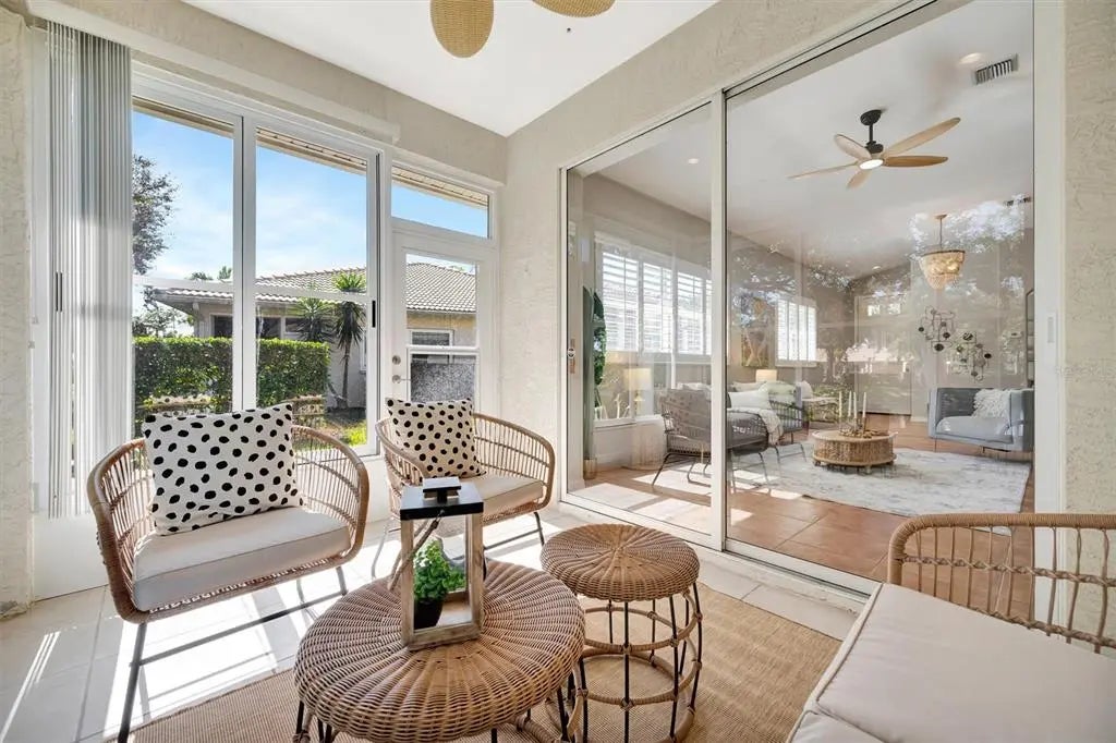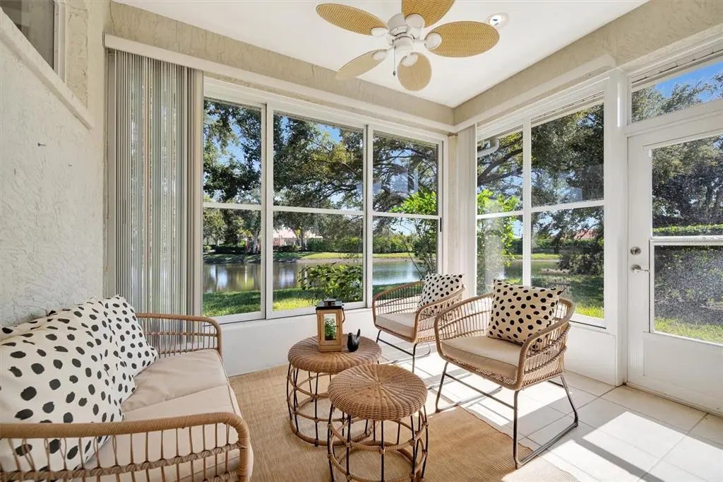 Freshly Updated Villa with Serene Water Views in the Resort-Style Community of Venetia! Discover effortless coastal living in this beautifully refreshed 2-bedroom plus den, 2-bath maintenance-free villa, tucked at the end of a quiet cul-de-sac. Recently updated from top to bottom, this home feels like new. The entire interior has been freshly painted, complemented by designer lighting and fans, brand-new stainless-steel kitchen appliances, a deep single-basin sink with luxury faucet, and new disposal. The main living areas feature elegant tile flooring, while the bedrooms showcase wide, white-oak luxury vinyl plank for a clean, coastal-inspired look. The kitchen and baths include updated hardware, designer lighting, and faucets, adding sophistication throughout. Inside, you’ll love the open layout with soaring ceilings, abundant natural light, and tranquil water views from nearly every room. Plantation shutters accent the windows, adding timeless character and privacy. The spacious great room flows seamlessly to the fully enclosed lanai, where sweeping water views create a peaceful backdrop for morning coffee or evening cocktails. The split-bedroom design provides privacy for guests, while the den with pocket doors offers flexibility as a home office, media room, or additional guest space. The primary suite is a true retreat, featuring bay windows overlooking the water, a large walk-in closet, and an ensuite bath with a walk-in shower. Additional highlights include a newer A/C unit, paver driveway, and a two-car garage. Enjoy the best of Florida living in Venetia—a maintenance-free, resort-style community offering multiple pools, a hot tub, fitness center, tennis, pickleball, and bocce courts, plus an active social calendar. All just minutes from Venice’s beautiful Gulf beaches, historic downtown, and the vibrant new Wellen Park. Whether you’re seeking a seasonal retreat or a full-time residence, this updated villa delivers the perfect combination of luxury, lifestyle, and location.