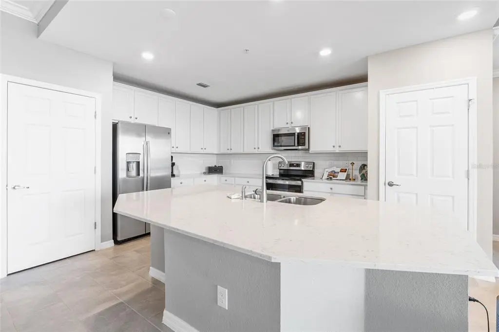 Enjoy resort-style living in this beautifully upgraded 2-bedroom plus den, 2-bathroom first-floor condo perfectly situated on a large scenic lake on the desirable lake side of the community (golf not included). This bright and open home features stainless steel appliances, a subway tile backsplash, elegant quartz countertops, and an oversized kitchen island ideal for entertaining. The spacious living area showcases crown molding and luxury vinyl plank flooring, while the primary suite offers a huge walk-in closet and a serene lake view. Relax on the oversized screened lanai, perfect for enjoying morning coffee or evening sunsets overlooking the water. Sarasota National is a gated, amenity-rich community offering something for everyone — enjoy dining at the Palm Club Restaurant or the Tiki Bar, stay active in the state-of-the-art fitness center, or unwind at the resort-style and lap pools. Additional amenities include an event lawn, coffee lounge, and spa services, providing the ultimate Florida lifestyle. Conveniently located just minutes from Downtown Wellen Park, Historic Venice, the Atlanta Braves Spring Training Stadium, world-class golf courses, beaches, dining, and shopping — this is the perfect place to live, play, and relax. Don’t miss your opportunity to own a piece of paradise in Sarasota National!