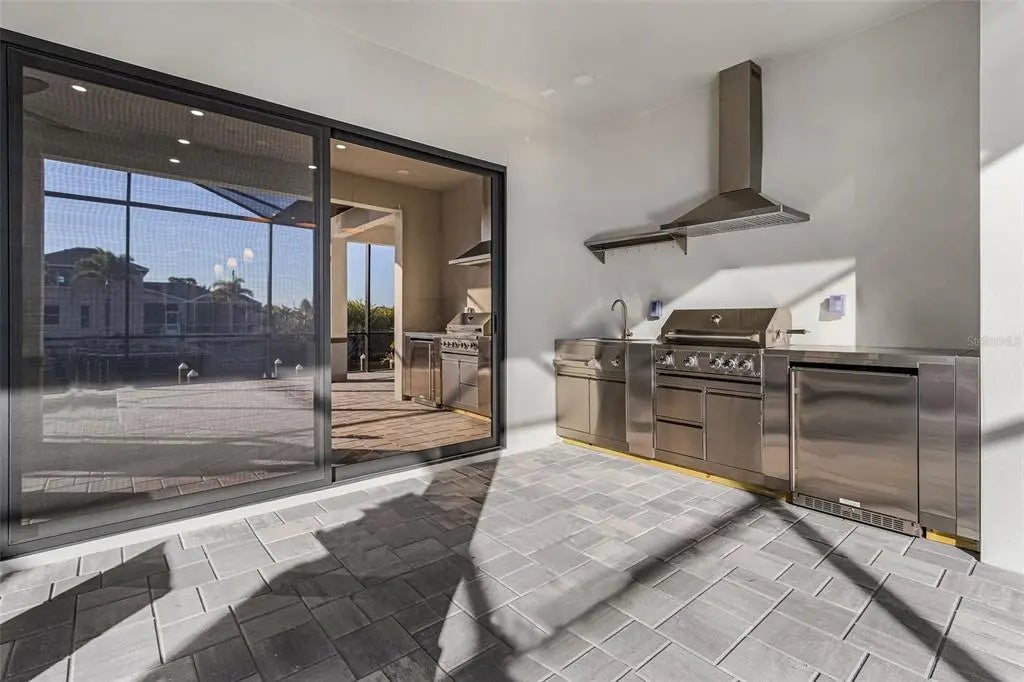- Exterior FeaturesAwning(s), French Doors, Garden, Irrigation System, Outdoor Grill, Outdoor Kitchen, Outdoor Shower