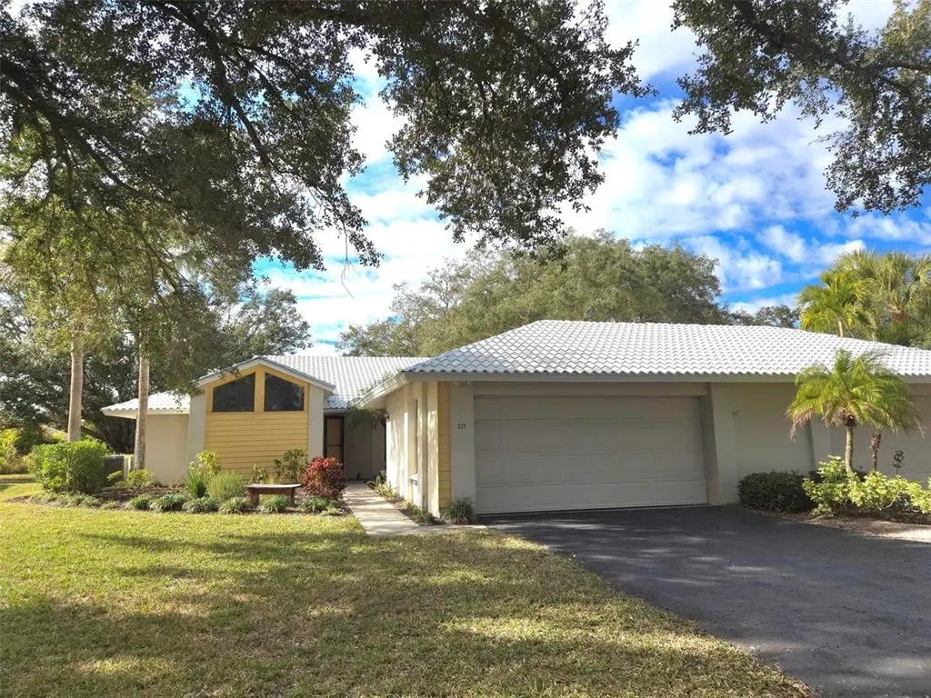 One or more photo(s) has been virtually staged. One or more photo(s) has been virtually staged. Deep inside the community of Plantation in Venice you will find Myrtle Trace. A neighborhood of single floor attached villas with clubhouse and heated community pool set under a canopy of mature oak trees. This split floorplan two bedroom two bath home has many updates . Major renovations took place in 2018 kitchen and 2022 baths. Custom hand-made cabinetry in the kitchen, butler's pantry and baths. The range hood and built-in desk with recessed shelving are walnut. There are a multitude of functional cabinets, drawers and a farm sink with stone backsplash and butcher block counters. Stainless appliances, refrigerator 2024. The washer and dryer are from 2023. The enclosed lanai aka Florida Room redesigned in 2024 with hurricane impact resistant windows can be den, dining area and office kept cool with motorized privacy shades. Vaulted ceilings in Living Room. The two-car garage has workspace plus the laundry area and generator hookup. There is an interior courtyard for gardeners. HVAC replaced in 2018. New Metal Roof. Available for immediate occupancy. Live the maintenance free lifestyle. Enjoy many clubhouse activities like water aerobics daily. Memberships available but not required at the Plantation Golf and CC. Close to Wellen Park 3 miles and 8.5 miles to downtown Venice.