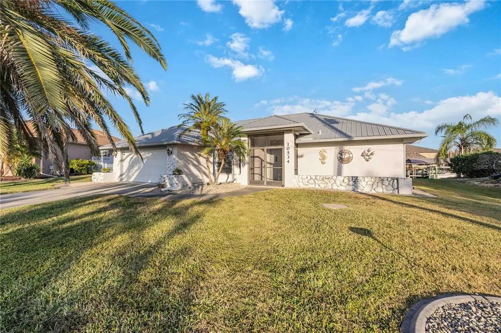 SAILBOAT LOT!! NO BRIDGES!! This canal home with seawall and boatlift already in place is what you have been waiting for!! Step into effortless Florida living at 10534 Alpaca Circle, a spacious and inviting 3-bedroom, 2-bath home offering over 2,000 square feet of comfortable, open-concept design. This residence is tiled throughout, creating a seamless flow from room to room while providing the durability and easy maintenance perfect for the Southwest Florida lifestyle. High, vaulted ceilings elevate the main living areas, which include a formal living room, formal dining area, an eat-in kitchen with a cozy breakfast nook, and a large family room ideal for gatherings or relaxing evenings at home. The split-bedroom layout offers privacy for the primary suite, while the additional bedrooms provide ample space for guests or a home office. Built in 1989 on a generous ¼-acre lot (most lots in Port Charlotte are .23), the property also features an inside laundry room and a 2-car garage for everyday convenience. Located in the desirable Port Charlotte Sec 82 area of South Gulf Cove, you’re just minutes from shopping, dining, parks, and the coastal amenities that define Gulf Coast living. With its clean design, abundant space, and tile flooring throughout, this home is move-in ready and a wonderful opportunity to enjoy the true Florida lifestyle. This property offers a peaceful neighborhood setting with easy access to nearby parks, boat ramps, walking trails, and Gulf beaches. Enjoy the convenience of being close to shopping, dining, and everyday amenities while still tucked away in a quiet residential area with large beautiful homes (the neighborhood requires 2500 sq foot footprints and at least two car garages for new builds) all around and being built regularly. Make your appointment today!