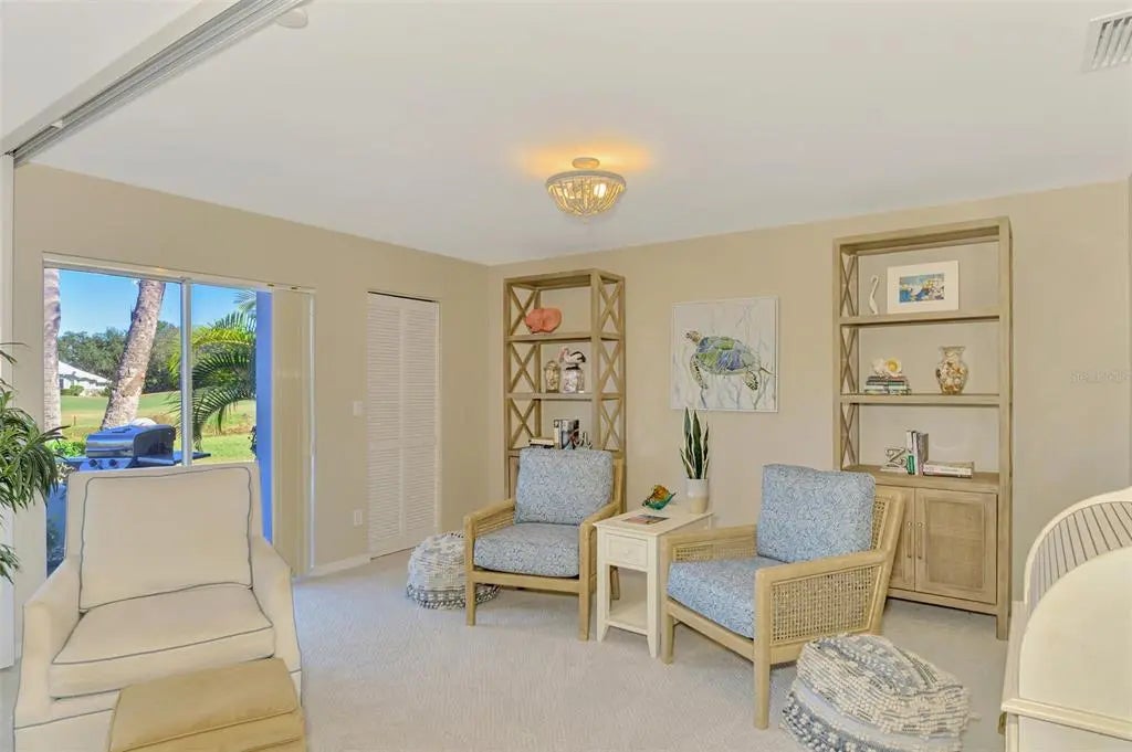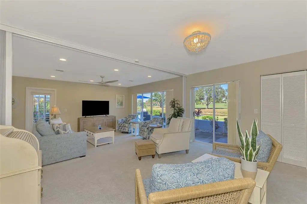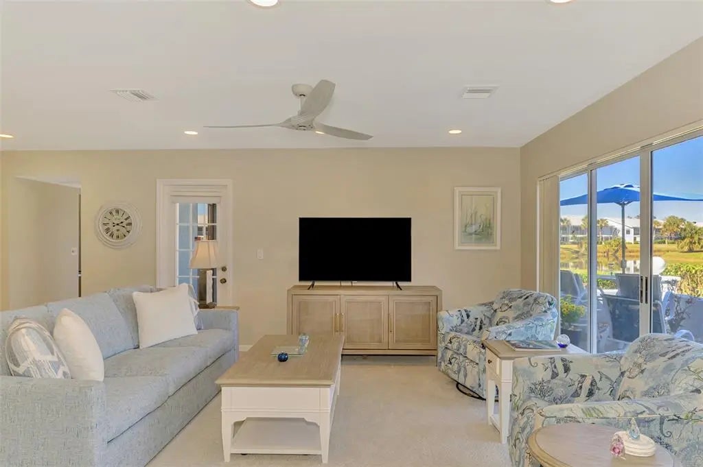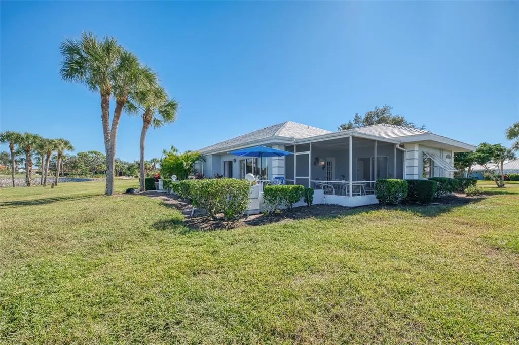 Charming patio home available and move-in ready for season! Pack your bags and head to Florida to this amazing two bedroom two bath nicely updated home. Fresh warm neutral colors inside welcome the new owners. Nothing left for the new owner to do to this one! NO WALL PAPER OR POPCORN CEILING!! New kitchen appliances, new ceiling fans, NEW ROOF (2024), NEW EXTERIOR PAINT (2025), NEW ELECTRIC PANEL (2024). Both closets were newly redone, as well!! This special home has a new divider which allows the main living area to be partitioned off if needed for privacy providing another room if needed for guests or privacy. Even the washer and dry and grill have been purchased and gently used by current owners in recent years. The amazing views from lanai will give you years of exciting golf watching on the second hole of the Bobcat course and if you get tired of watching golf head to the Atlanta Braves Stadium only minutes away for a game or one of the many sponsored social events; with all this who needs ESPN (LOL). This well maintained and loved home is what you will find in this "Home away from Home". This one truly offers everything you are looking for in the Florida Lifestyle; enjoy the sun and views on the lanai, join the golf club and play a round of golf, go to the community pool and relax with neighbors! Make your choice because the current owners have already done the work in making this one updated and low maintenance for you! 461 Wexford Cir is special and worth the look. Put it on your MUST SEE list before it is gone. NEW Furnishings are beautiful and available!