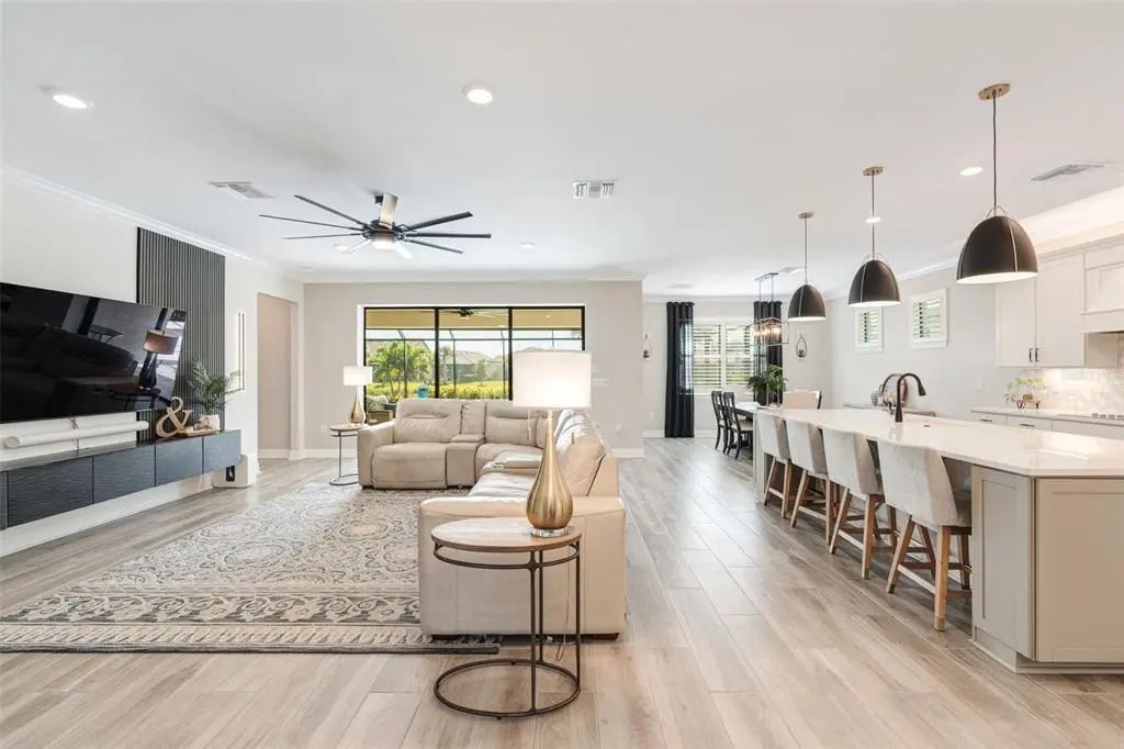 Experience elevated coastal living in this exceptional 4 bedroom 4 bathroom residence nestled within the very desirable Islandwalk community. At the heart of the home is an expansive kitchen featuring a striking 10-ft island, premium finishes, and generous storage - perfect for both intimate gatherings and distinguished entertaining. The open concept living space is bathed in natural light and overlooks a captivating water view. Step outside to your own private sanctuary: and incredible saltwater pool surrounded by lush landscaping and serene water vistas. The outdoor oasis is the highlight of exceptional Florida living. The climate-controlled 3 CAR garage with 4ft extension is a rare gem. Ideal for a vehicle collection, a personal fitness studio or a hobby space, all kept cool and comfortable year round. The second level elevates the home even further, showcasing a grand loft and spacious bonus room that can transform effortlessly into a media lounge, game room, executive office, or a guest retreat. Inside and out, this home blends comfort, style and resort like living. In this highly coveted, gated community of Islandwalk, you'll enjoy the lowest CDD in Wellen Park, and many top tier amenities provided amidst pristine, master-planned surroundings. Just minutes from downtown Wellen Park, Atlanta Braves Spring Training Stadium, shops and restaurants. An incredible opportunity you won't want to miss. Schedule a showing today!