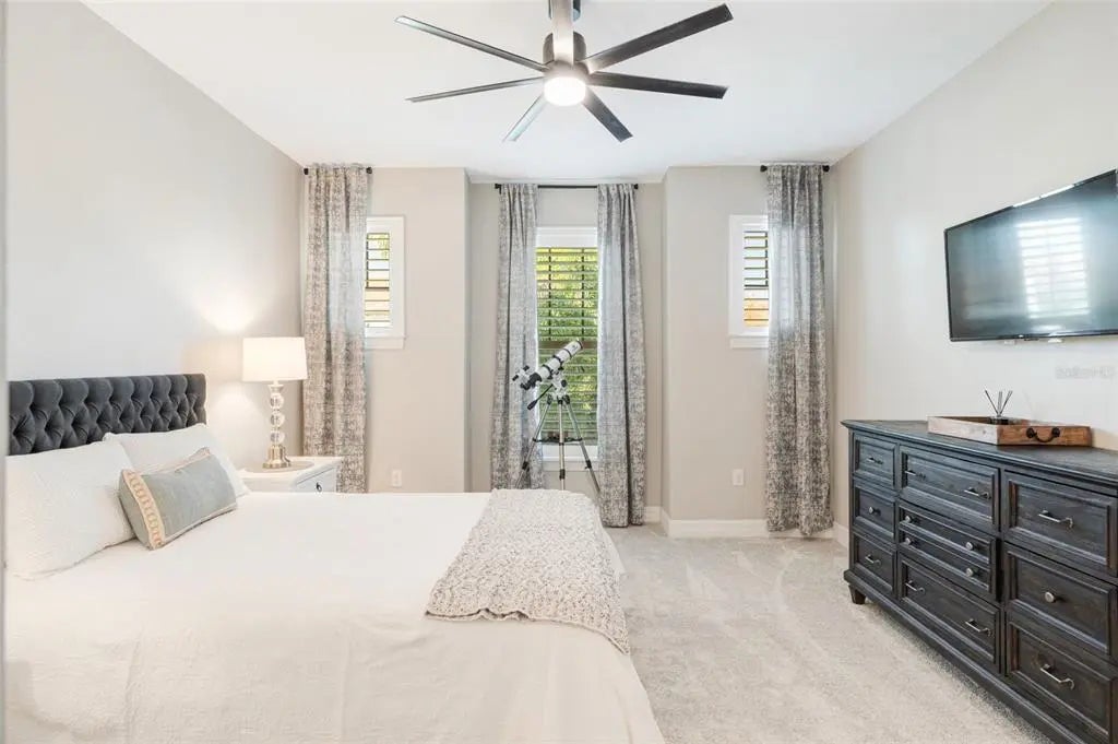- Interior FeaturesCeiling Fan(s), Crown Molding, Dry Bar, High Ceilings, Kitchen/Family Room Combo, Primary Bedroom Main Floor, Split Bedroom, Stone Counters, Tray Ceiling(s), Walk-In Closet(s), Window Treatments