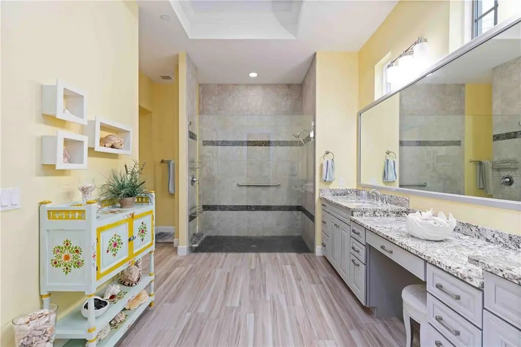 - Interior FeaturesCeiling Fan(s), Crown Molding, Open Floorplan, Primary Bedroom Main Floor, Solid Surface Counters, Solid Wood Cabinets, Split Bedroom, Stone Counters, Tray Ceiling(s), Walk-In Closet(s)