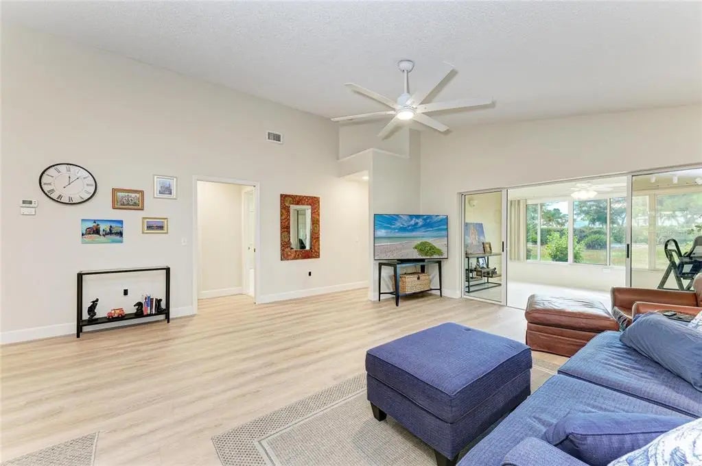 Welcome to the Villas of Somerset at Plantation Golf & Country Club—one of Venice’s most desirable and rarely available villa communities. This spacious 2-bedroom, 2-bath standalone villa offers a peaceful setting, beautifully maintained grounds, and easy, maintenance-free living. Inside, you’ll find two generous bedroom suites, two baths featuring granite countertops, a jetted garden tub, a large Florida room and excellent storage. The open great room with cathedral ceilings, recessed lighting, and lighted plant shelves creates a bright, airy feel perfect for everyday living and entertaining. The kitchen offers abundant cabinetry, a center island, built-in desk, breakfast nook with access to the covered lanai, and convenient indoor laundry. A blend of ceramic tile and updated luxury vinyl flooring enhances durability and style throughout. The attached garage includes a workbench, ideal for hobbies or projects. Residents of Somerset enjoy a sparkling heated pool, clubhouse, and beautifully maintained grounds. Optional membership at Plantation Golf & Country Club expands your lifestyle even further with championship golf, tennis, pickleball, bocce, an Olympic-size pool, fitness center, and an active social calendar. Located close to Gulf beaches, shopping, restaurants, Wellen Park, medical facilities, and the Atlanta Braves’ spring training stadium at CoolToday Park—this villa offers the perfect blend of comfort, convenience, and Florida lifestyle. Don’t miss this rare opportunity in the Villas of Somerset!