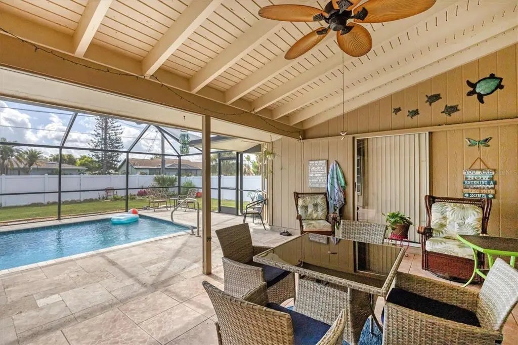 Modernized and meticulously maintained 2-bedroom, 2-bath pool home in Venice East offering exceptional privacy with no HOA, no CDD, and ample space for boat or RV storage. Located on an oversized lot with a 6-foot vinyl privacy fence, this property features a private pool installed in 2022 with screened enclosure and travertine paver deck. Designed for indoor-outdoor living, the home includes pocket sliding glass doors to the covered lanai with access from the kitchen, living area, and primary bedroom. Extensive updates since 2015 include fresh interior and exterior paint, landscaping clean-up, a newer roof, renovated kitchen and bathrooms, newer kitchen appliances, tile flooring in main living areas with laminate wood flooring in bedrooms, whole-home replumb, refreshed landscaping, newer A/C (2022), newer water heater, and new front windows. Conveniently located near beaches, Wellen Park, Historic Downtown Venice, shopping, dining, and golf. Move-in ready and suitable for full-time, seasonal, or investment use. Creative financing may be considered. Seller is a Florida Licensed Real Estate Agent.